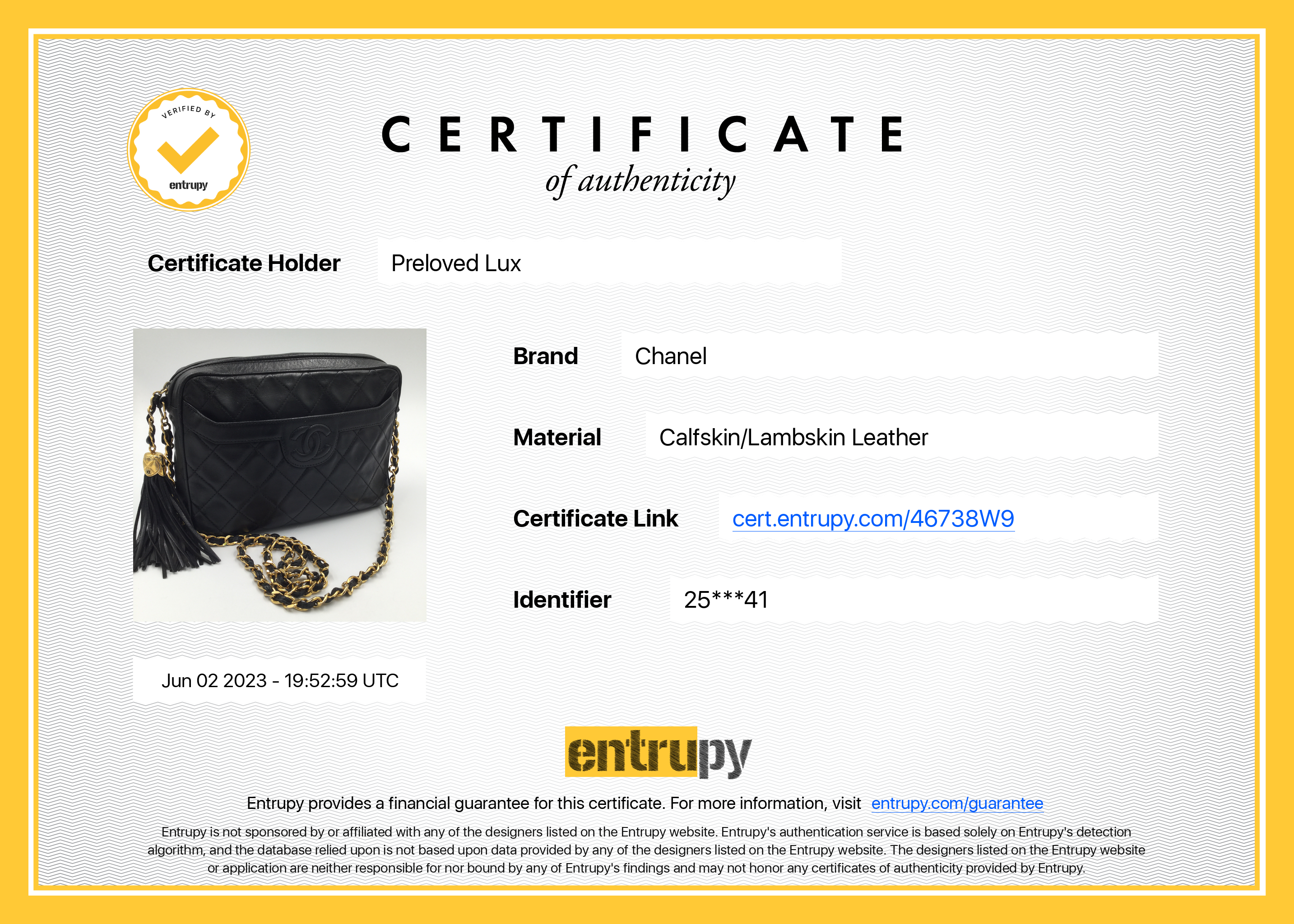 We guarantee this is an authentic CHANEL handbag or 100% of your money back. This Chanel vintage lambskin camera bag has a unique tassel attached to the bag along with gold chain with leather strap. Can wear as crossbody.