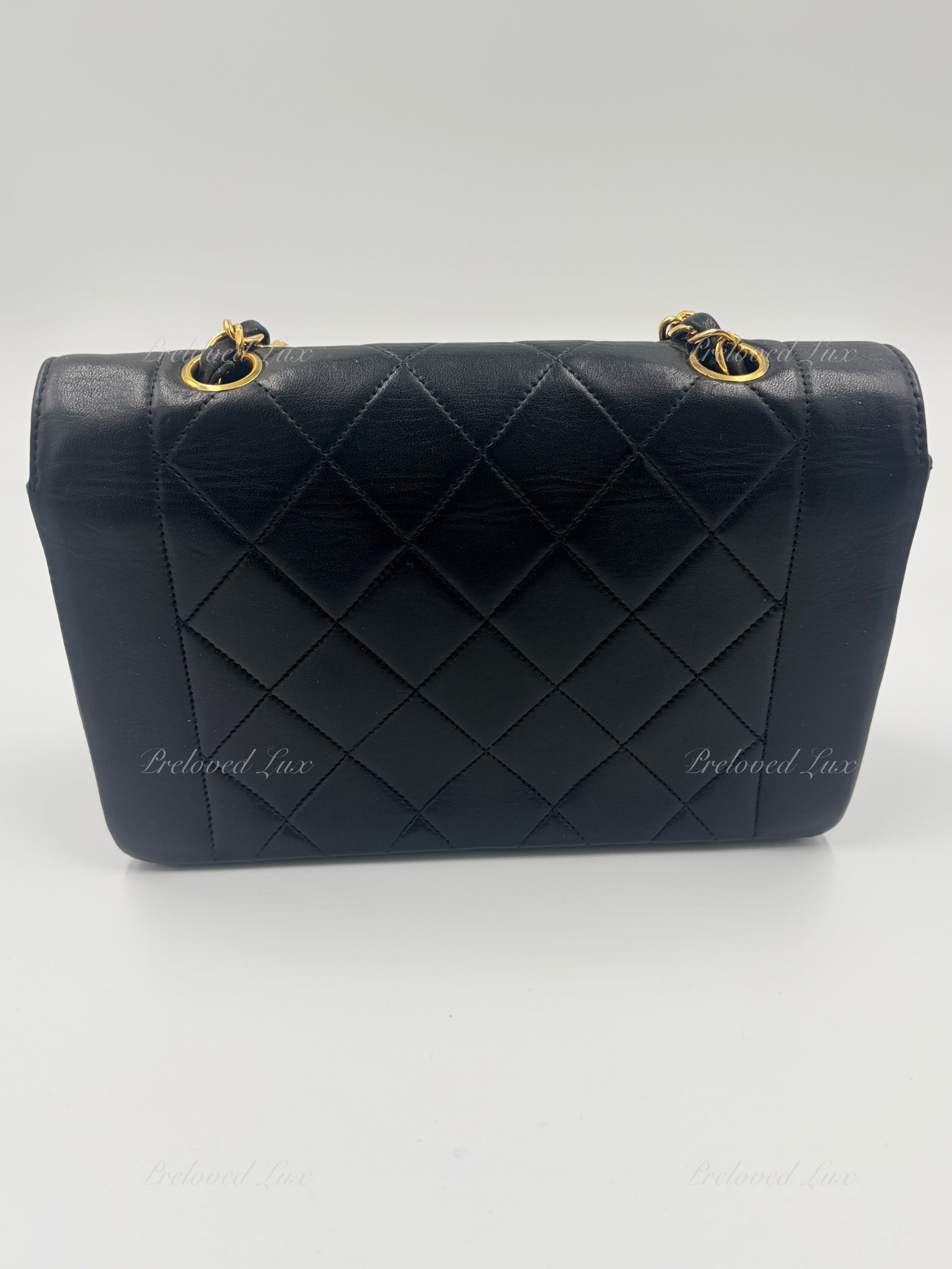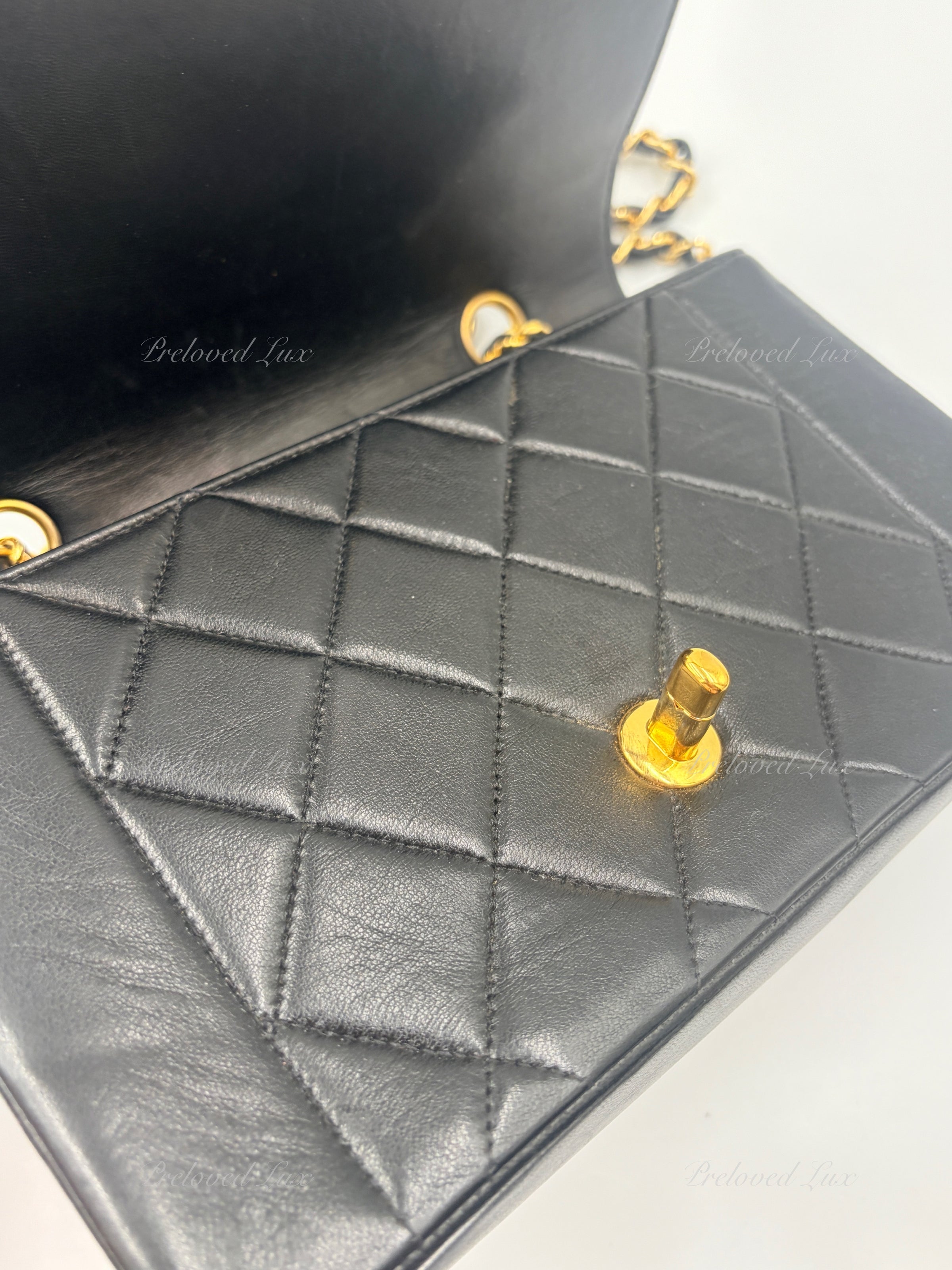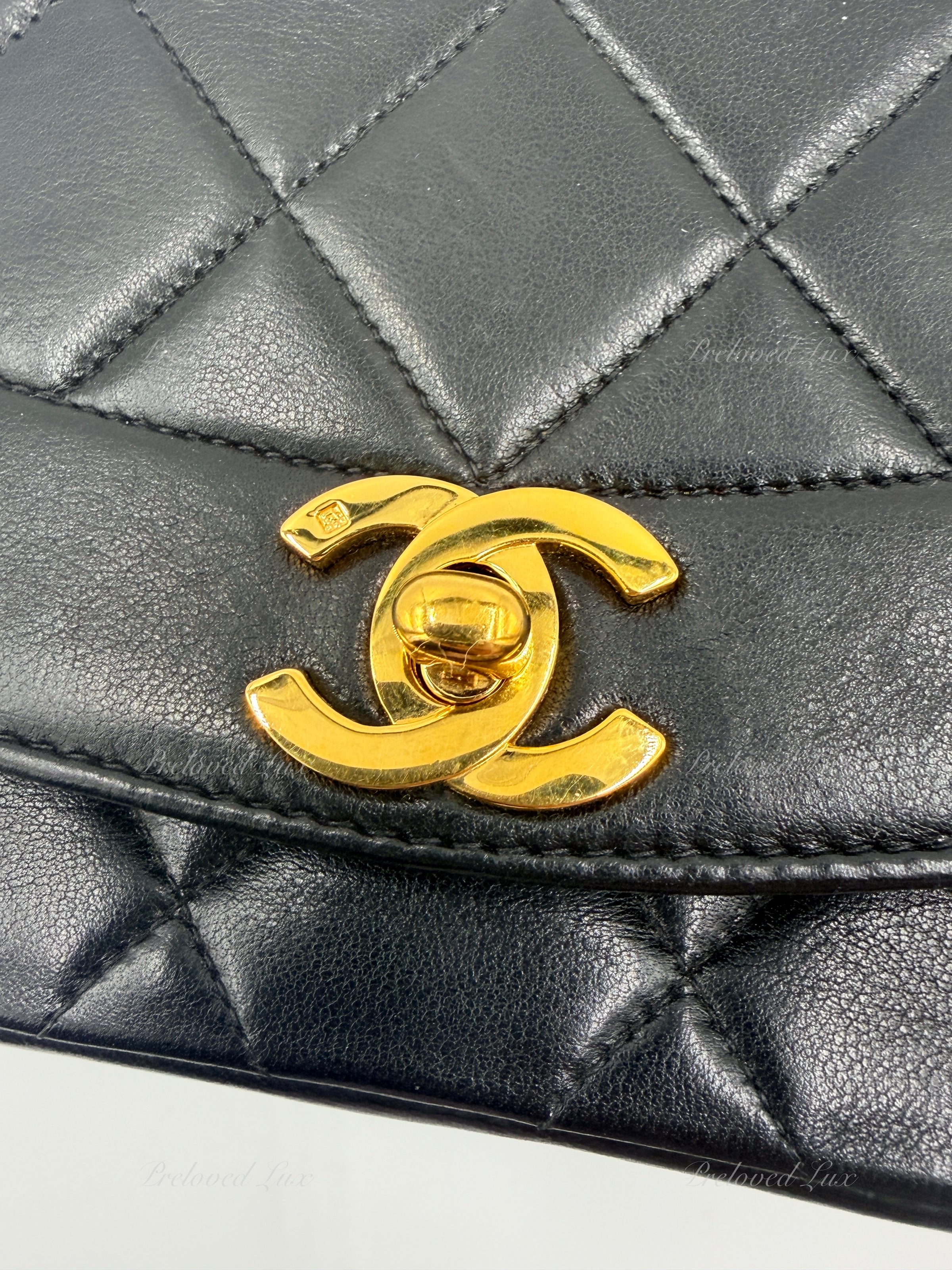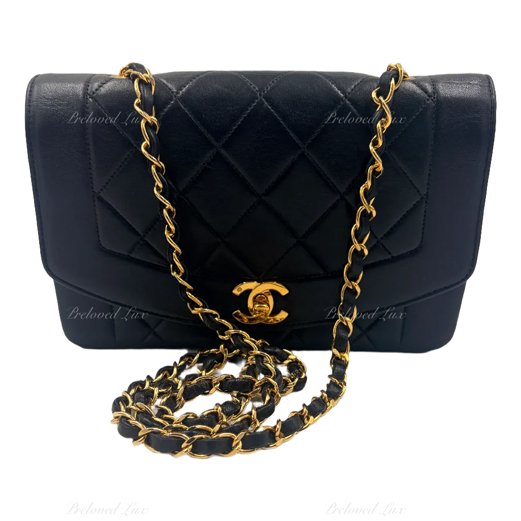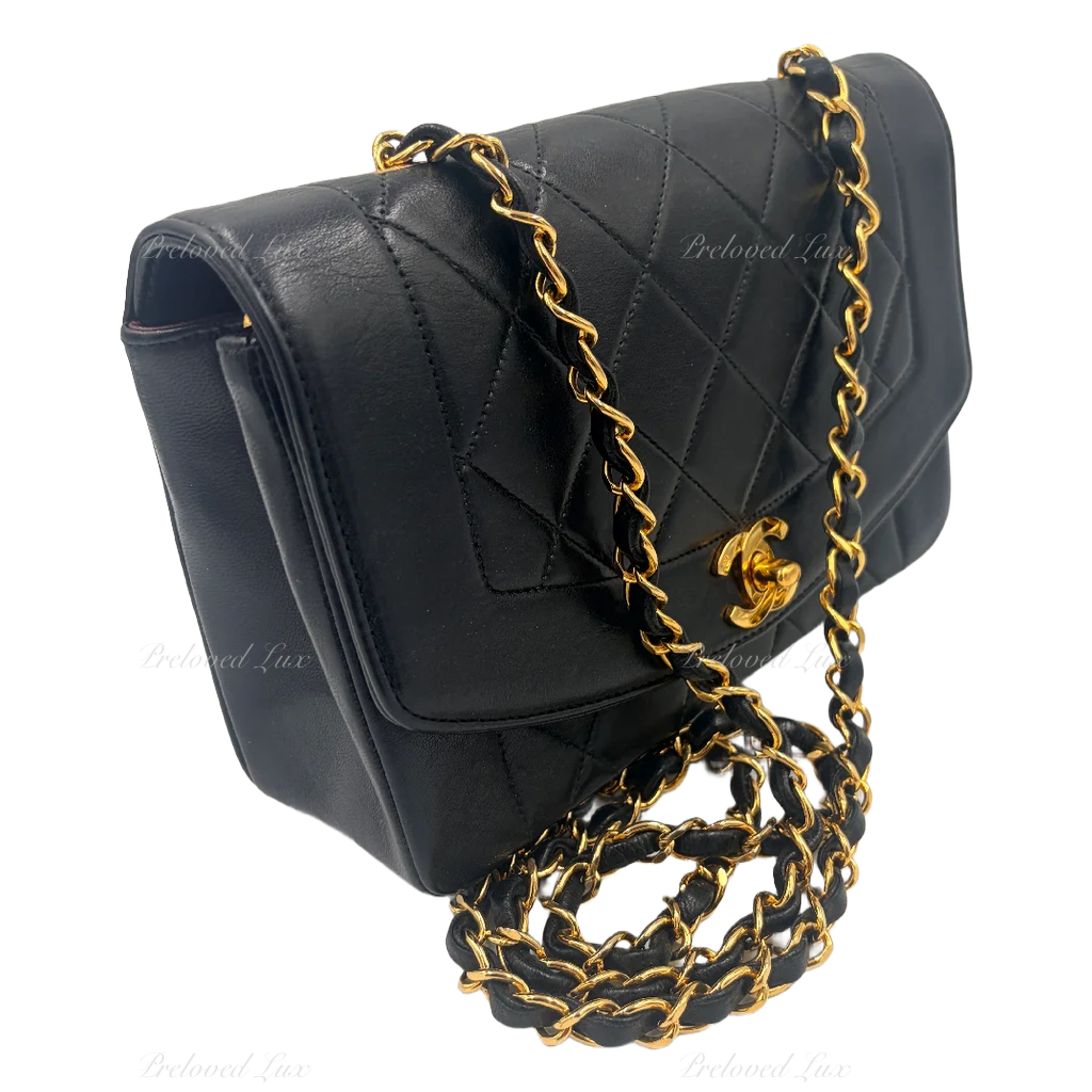 CHANEL Black Lambskin Small Diana Flap Bag Gold Hardware