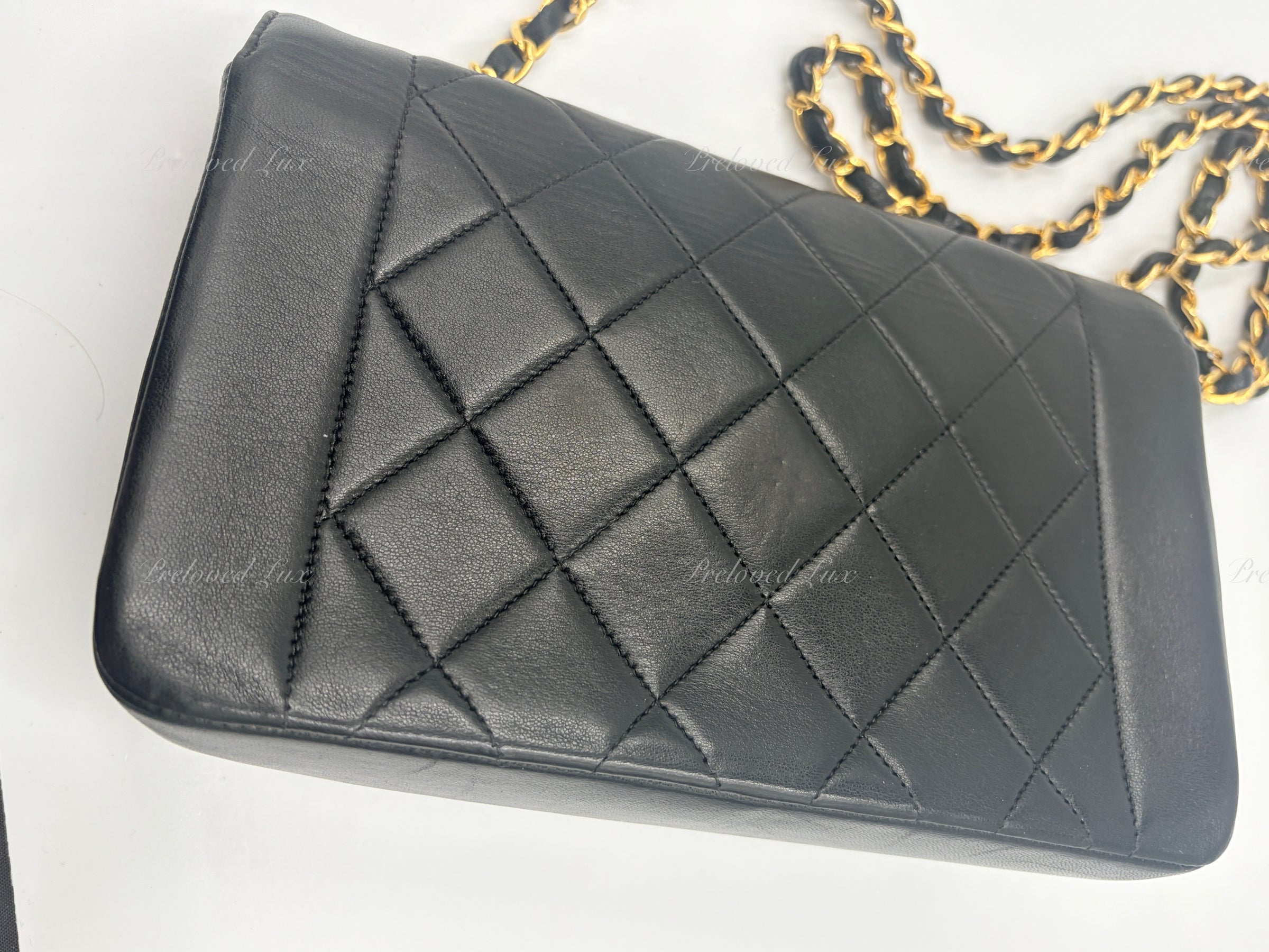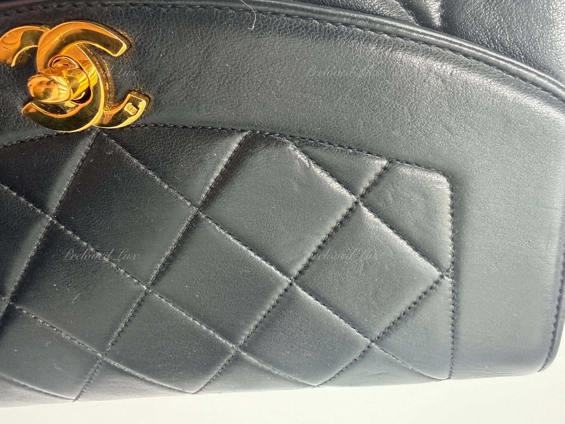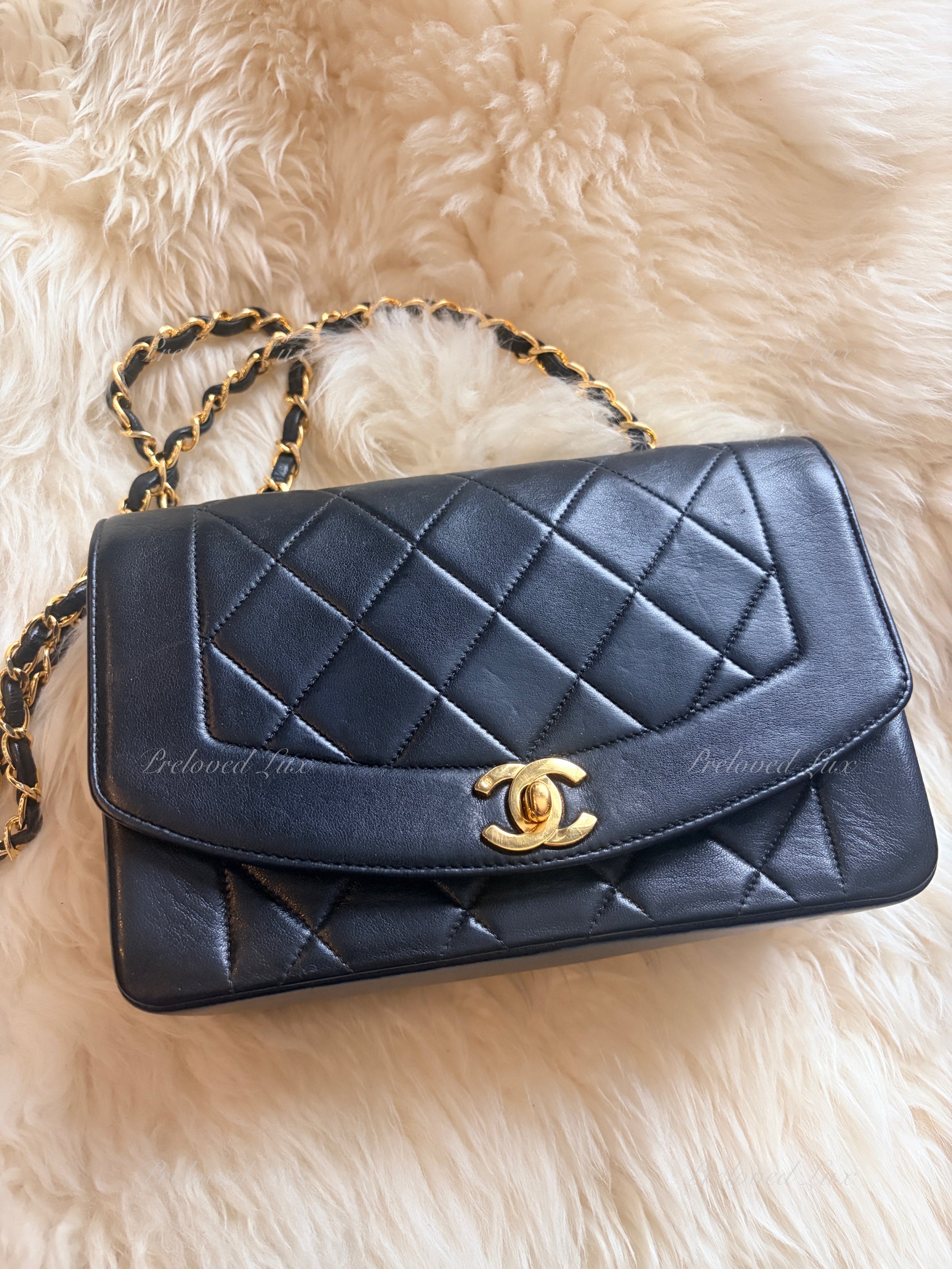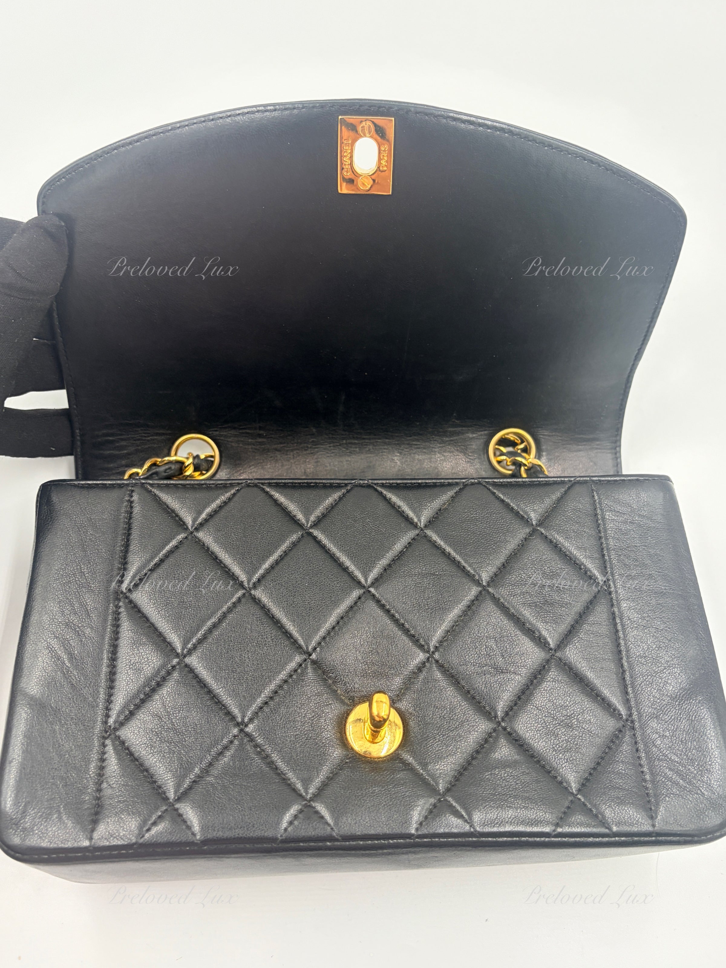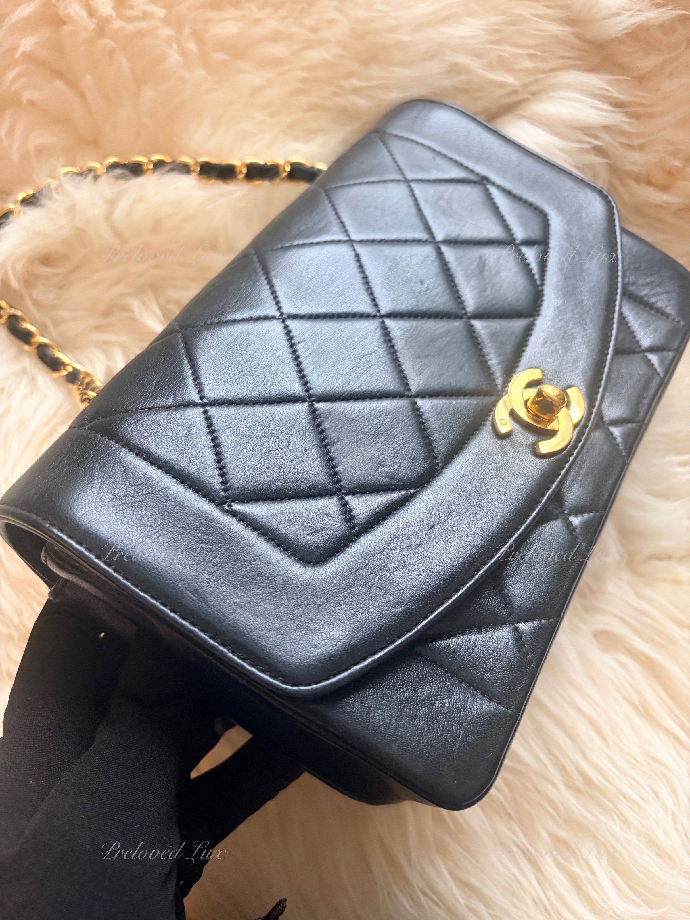 CHANEL Black Lambskin Small Diana Flap Bag Gold Hardware