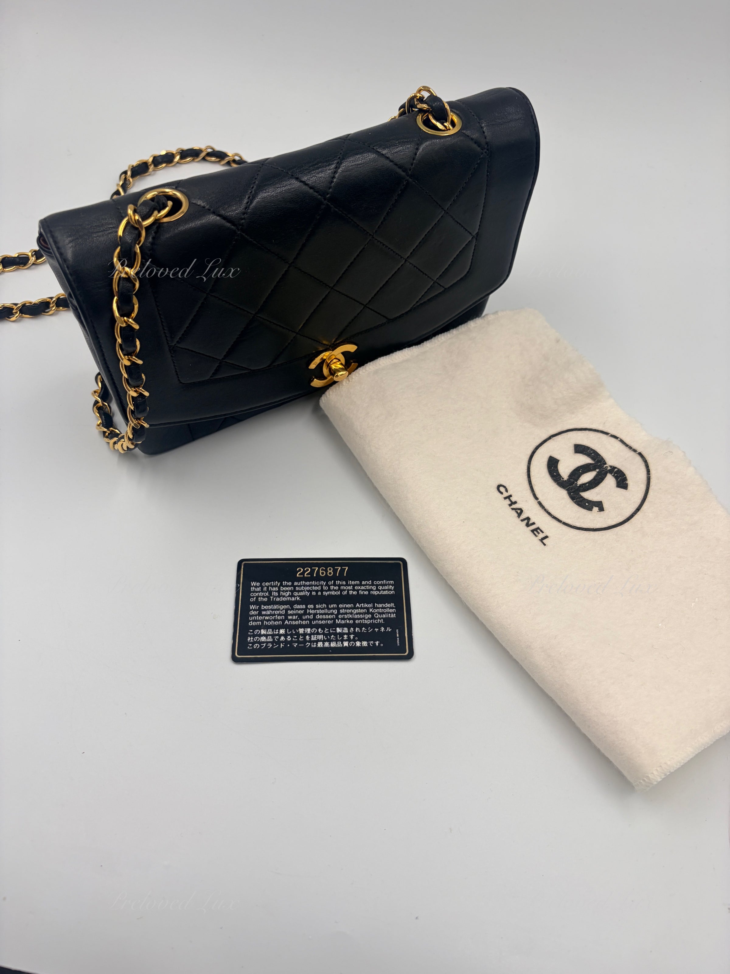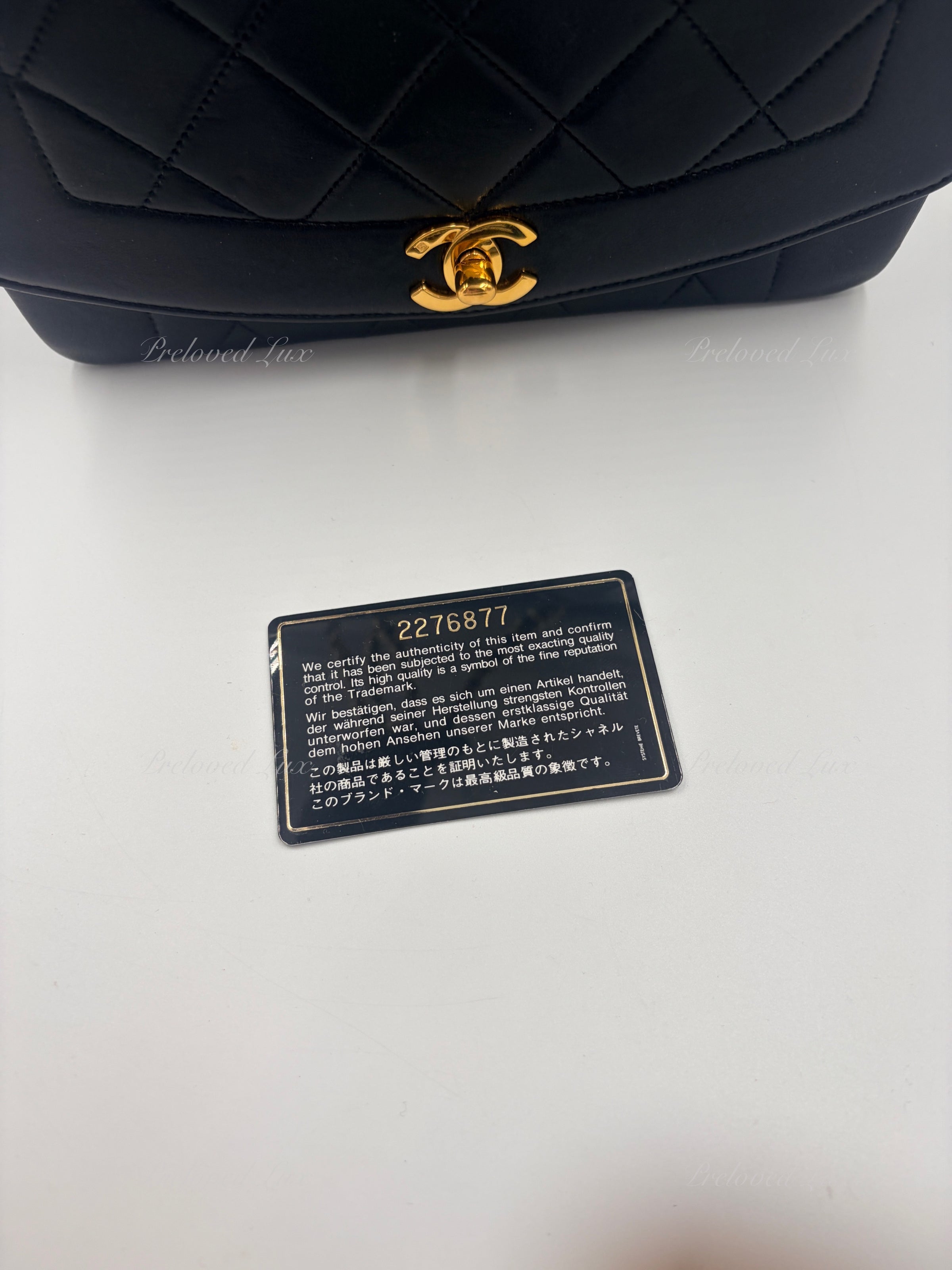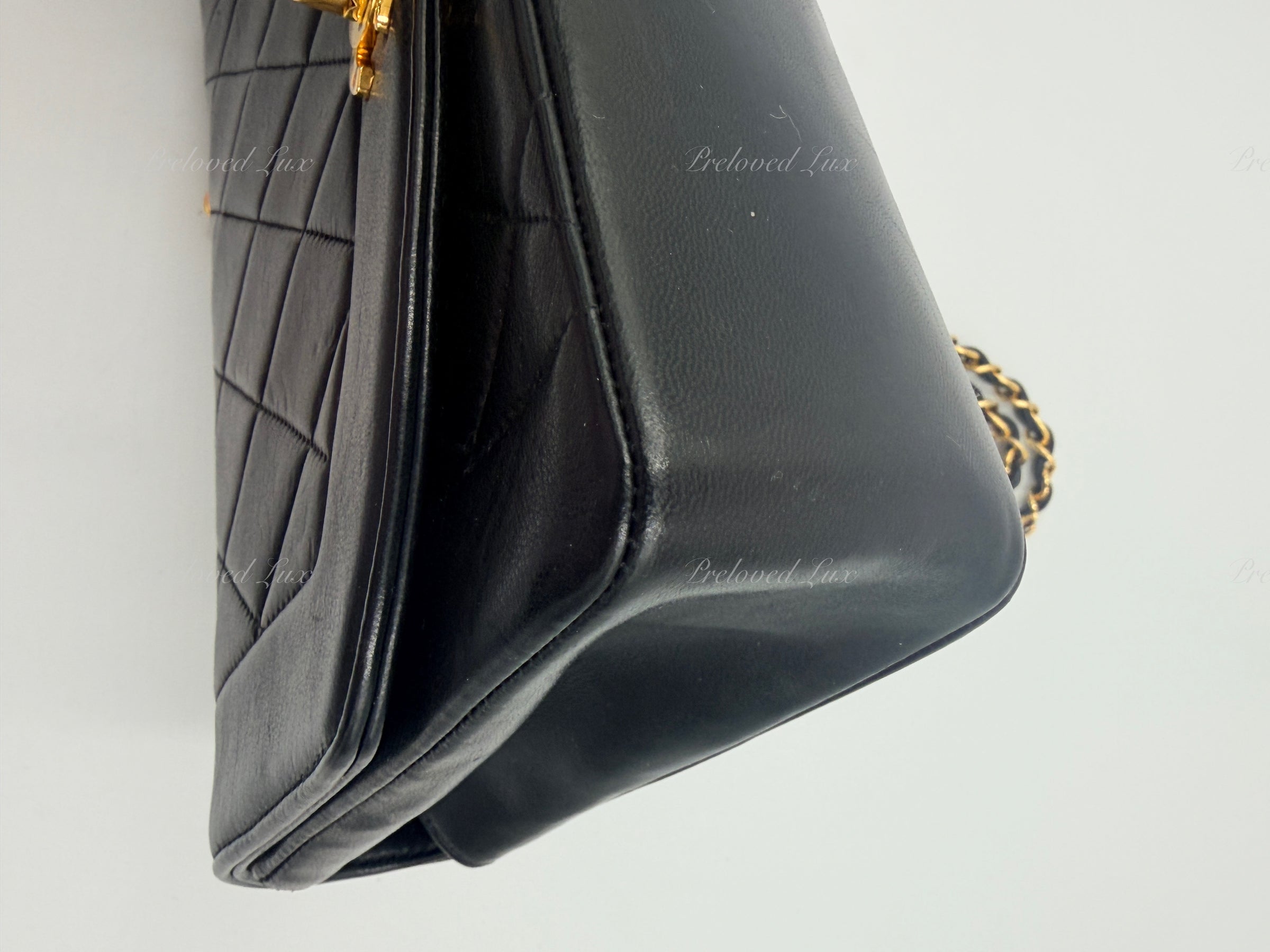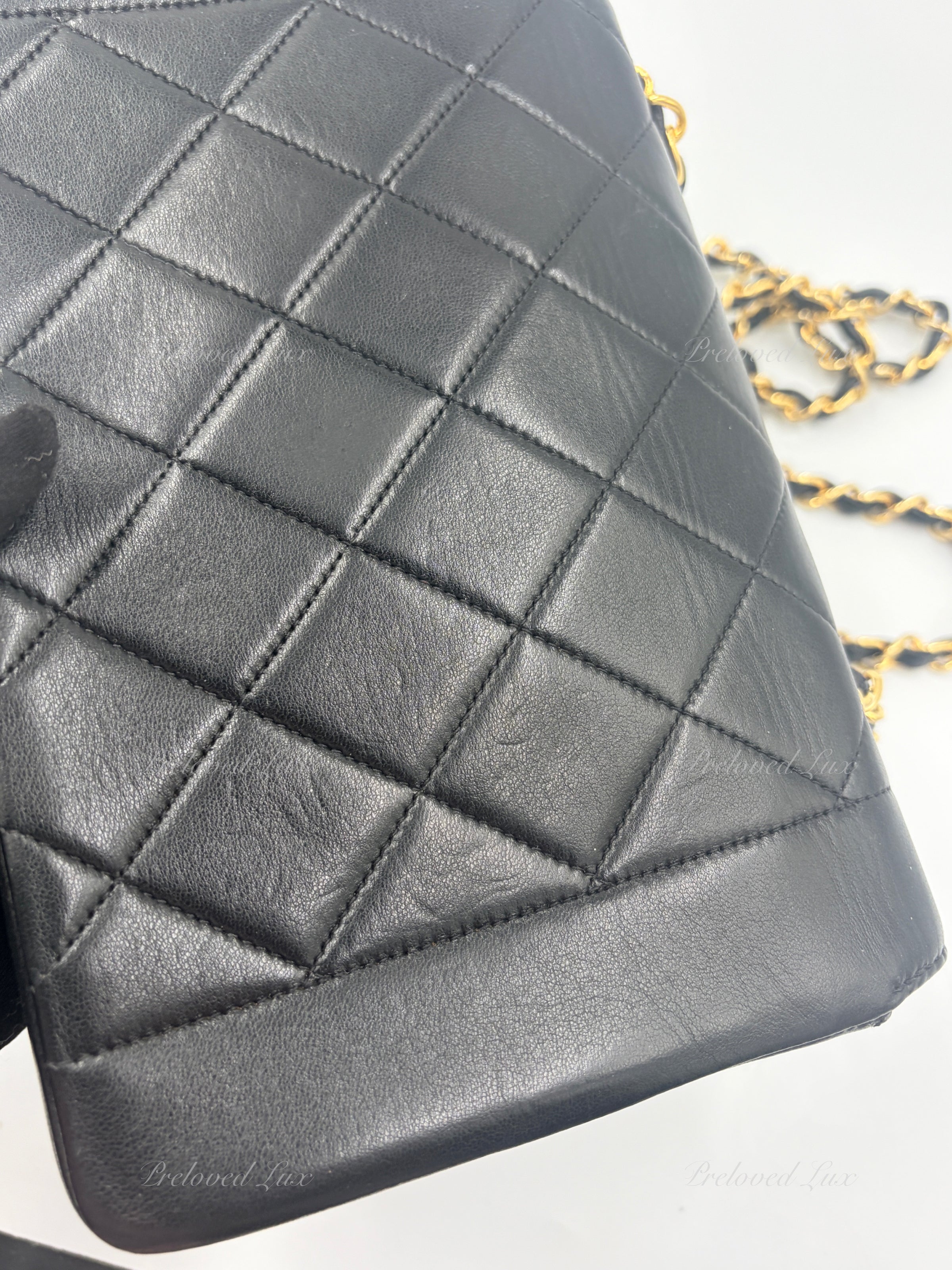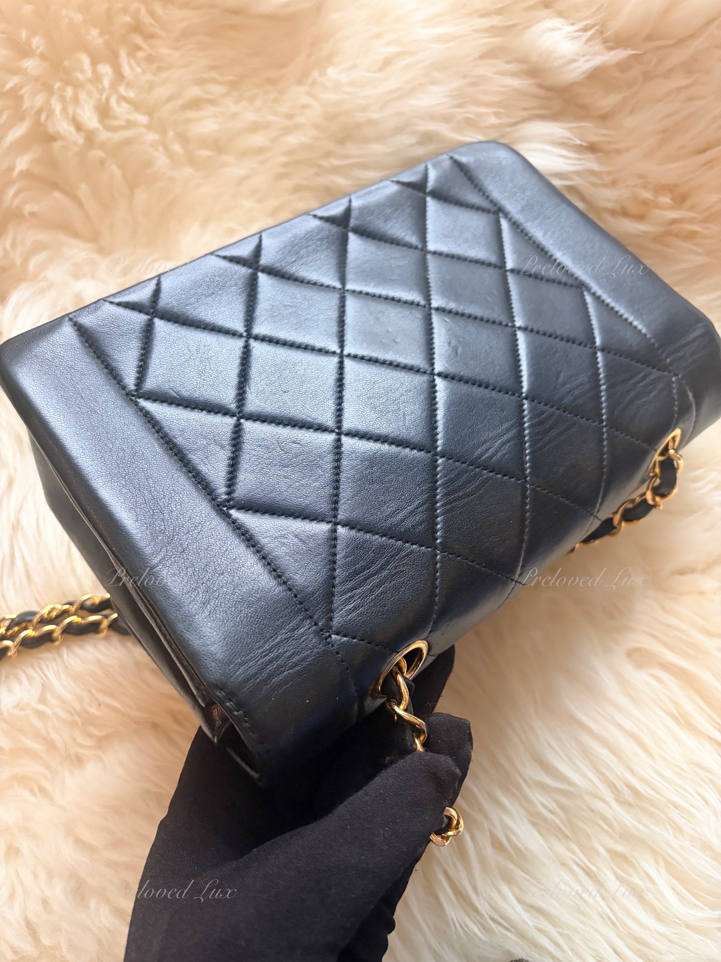 CHANEL Black Lambskin Small Diana Flap Bag Gold Hardware