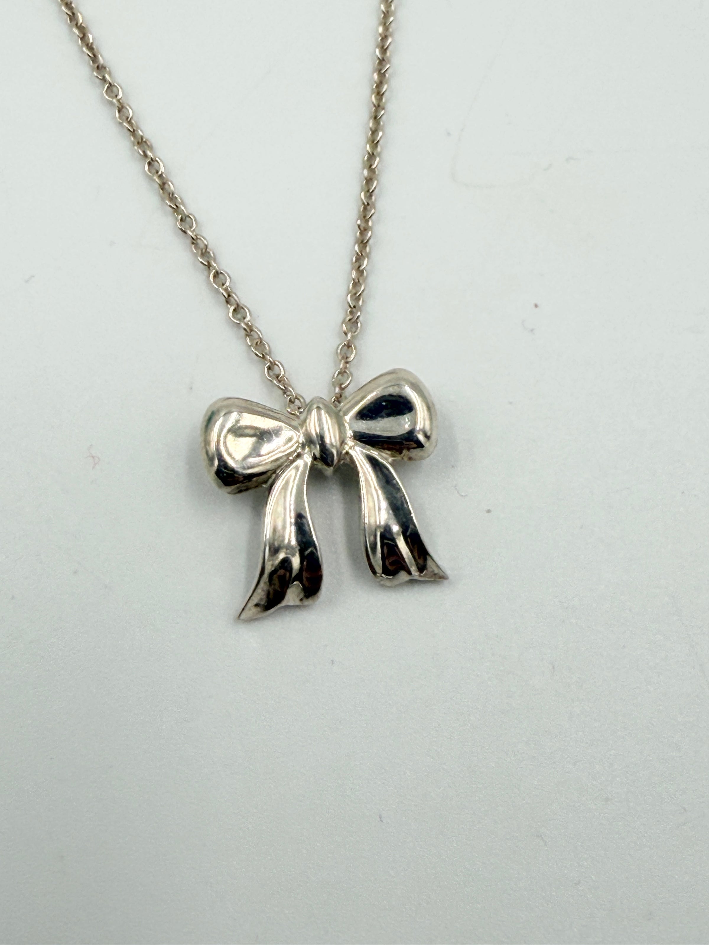 Tiffany & Co Sterling Silver 925 Bow Pendant Necklace