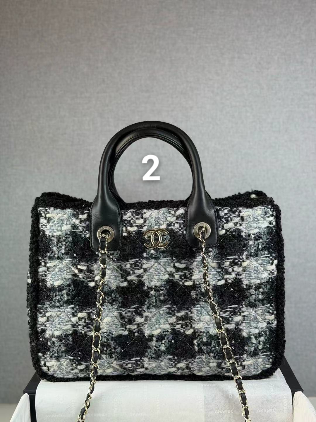 Chanel 25A كامل الجلد الأسود الذهب Tote hobo [الموجودة]