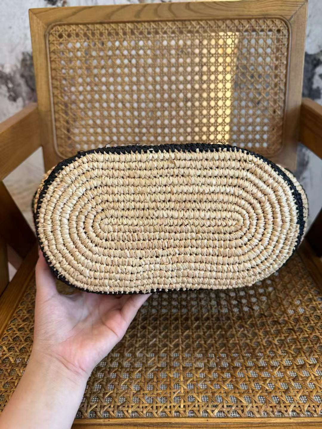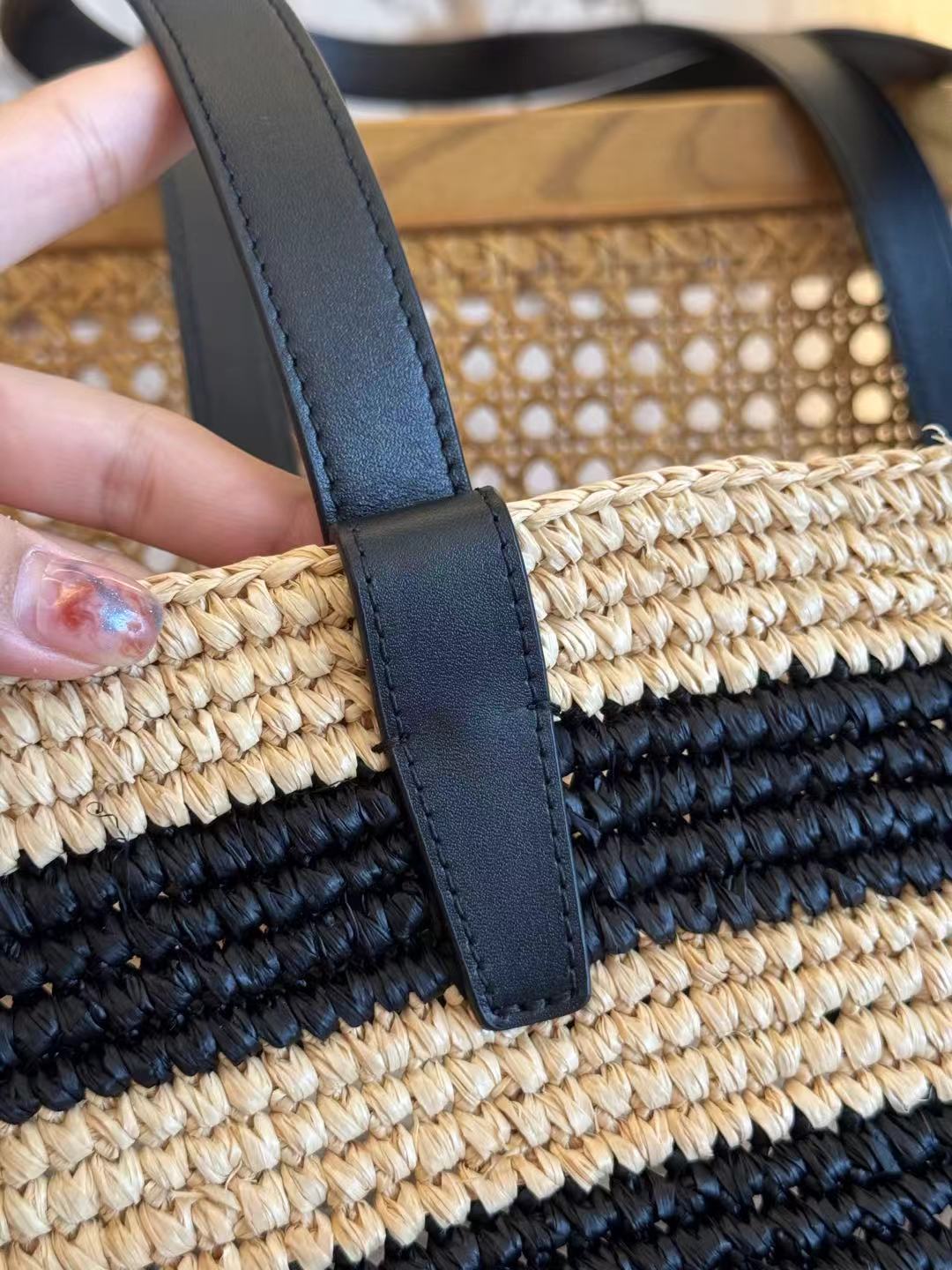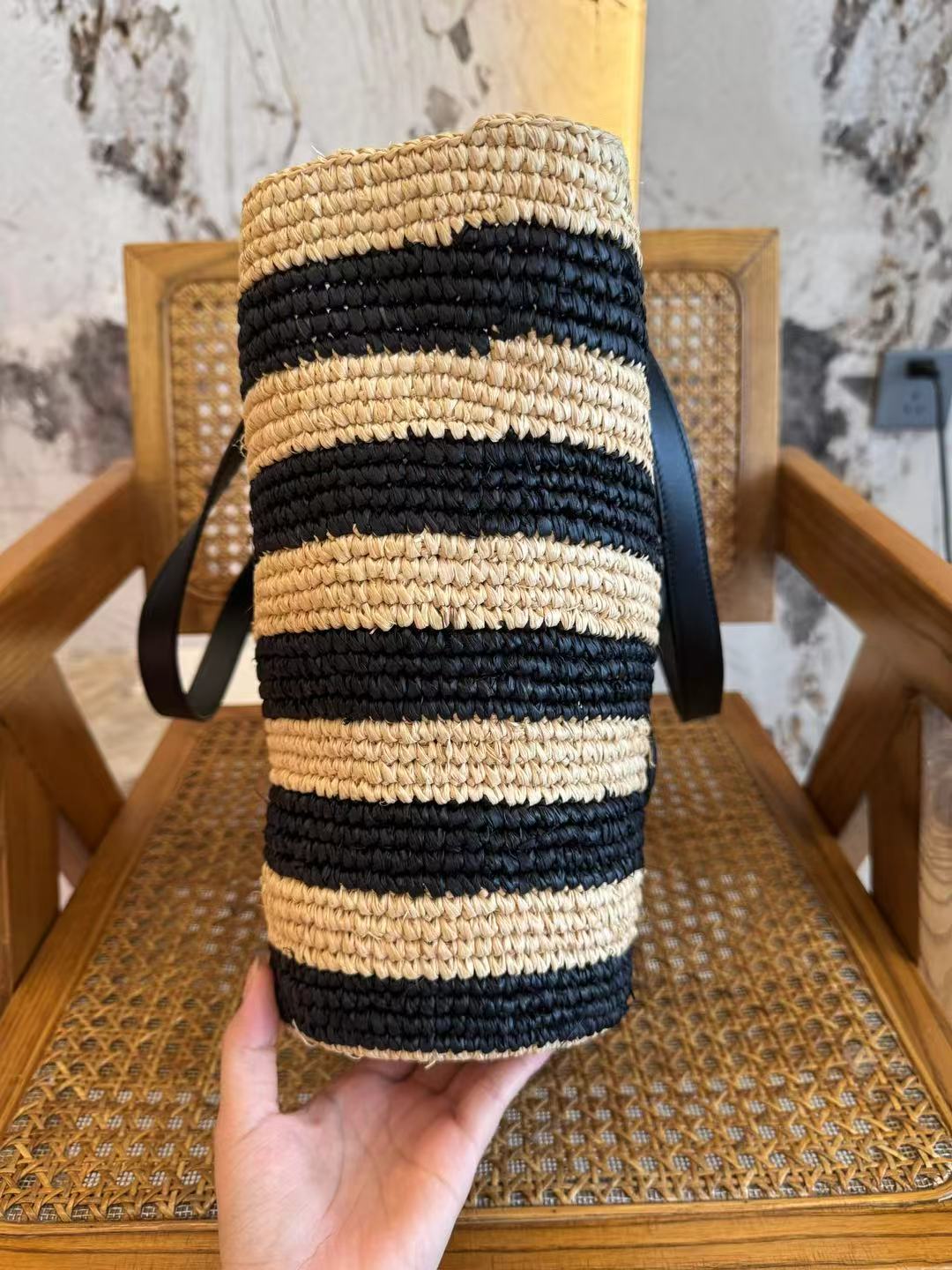 حقائب منسوجة يدويًا، كل قطعة فريدة. قد يختلف الحجم والشكل قليلاً.