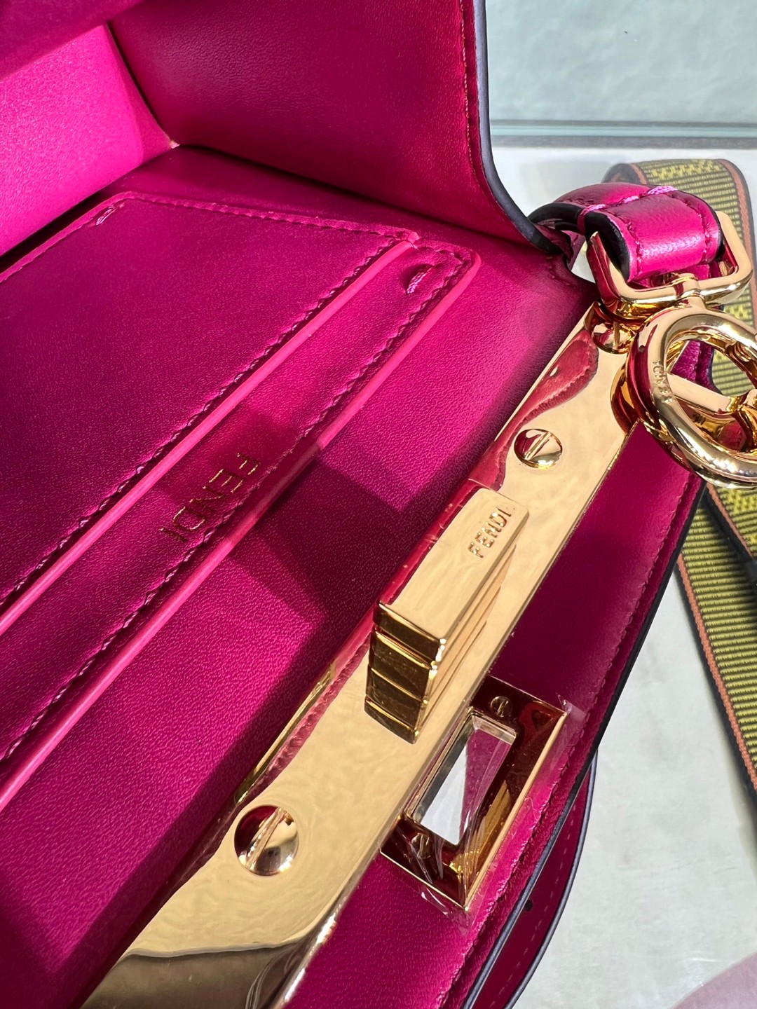 حقيبة FEND1 Peekaboo ISeeU Petite الكلاسيكية مع التغييرات الخفية في تصميم كل موسم ، تأتي مع مجال الهواء والشعور المتقدم ، لن تكون قديمة لسنوات ، والسعة كبيرة ، ومناسبة للسفر في الربيع والصيف ، والحياة اليومية.