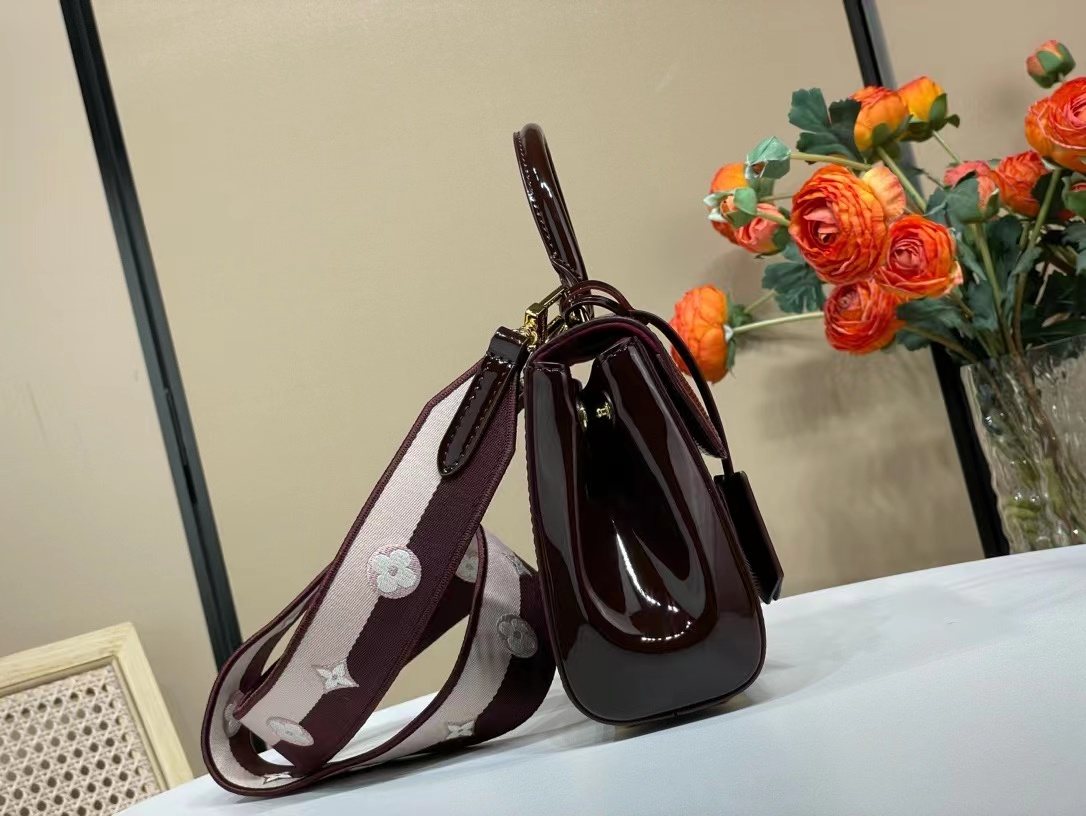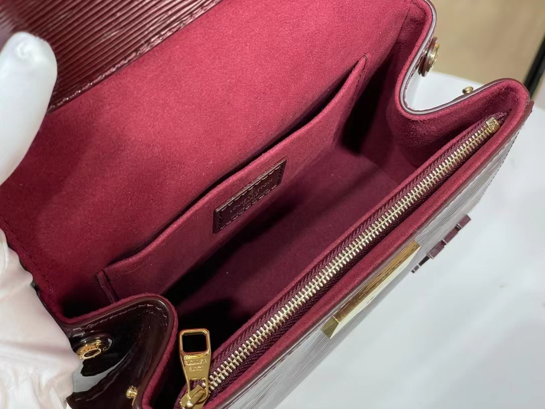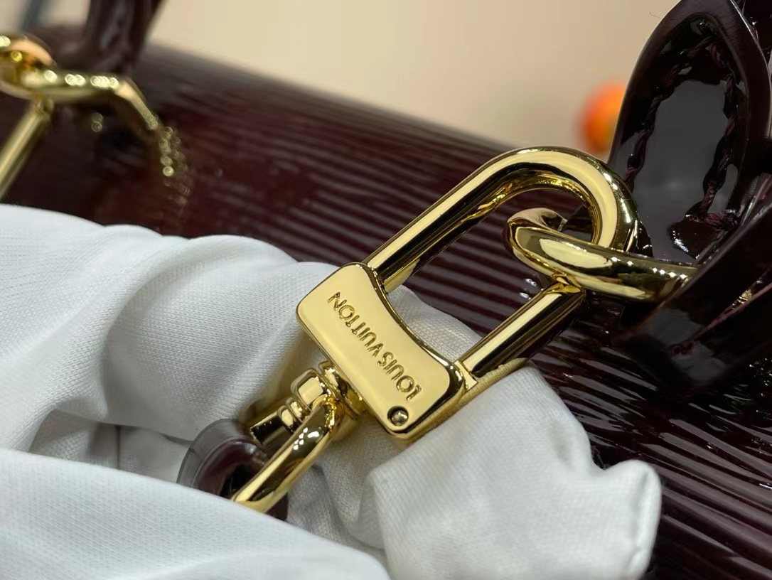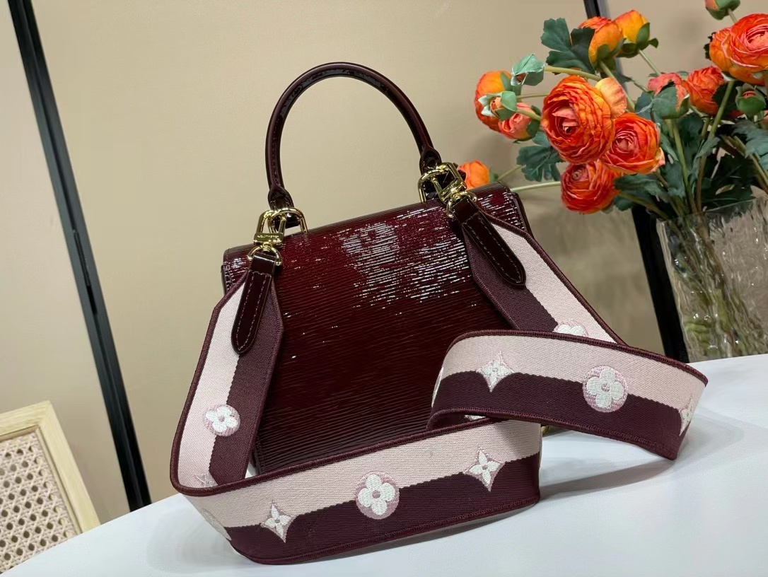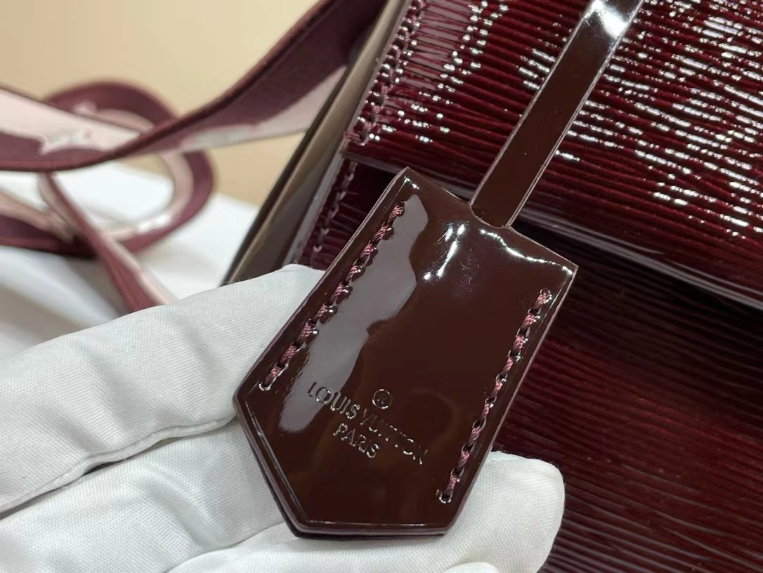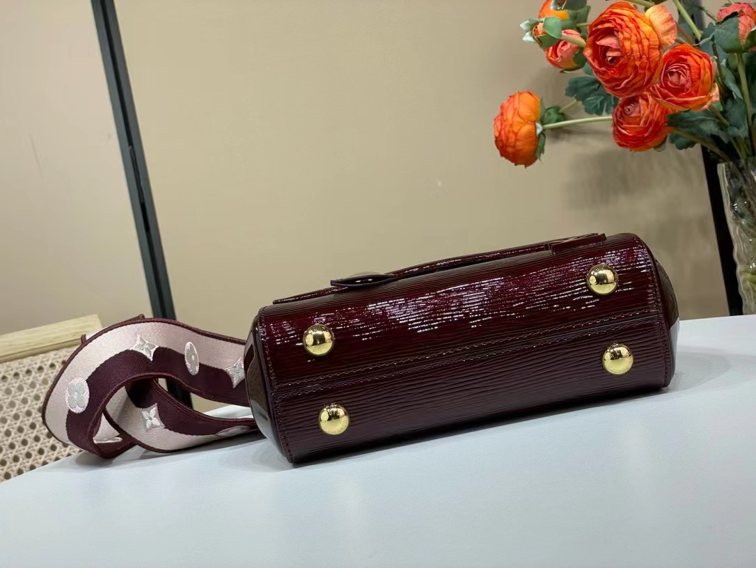تُظهر حقيبة Cluny المصغرة نوعين من الأحزمة الجاميع القابلة للإزالة: شعار لوي وايتون يعلن هوية العلامة التجارية، والعكس يعرض زهور مونوغرام. جلد Epi مع شعار LV من الراتنج الحرير. إزالة حزام الكتف أكثر رسمية.