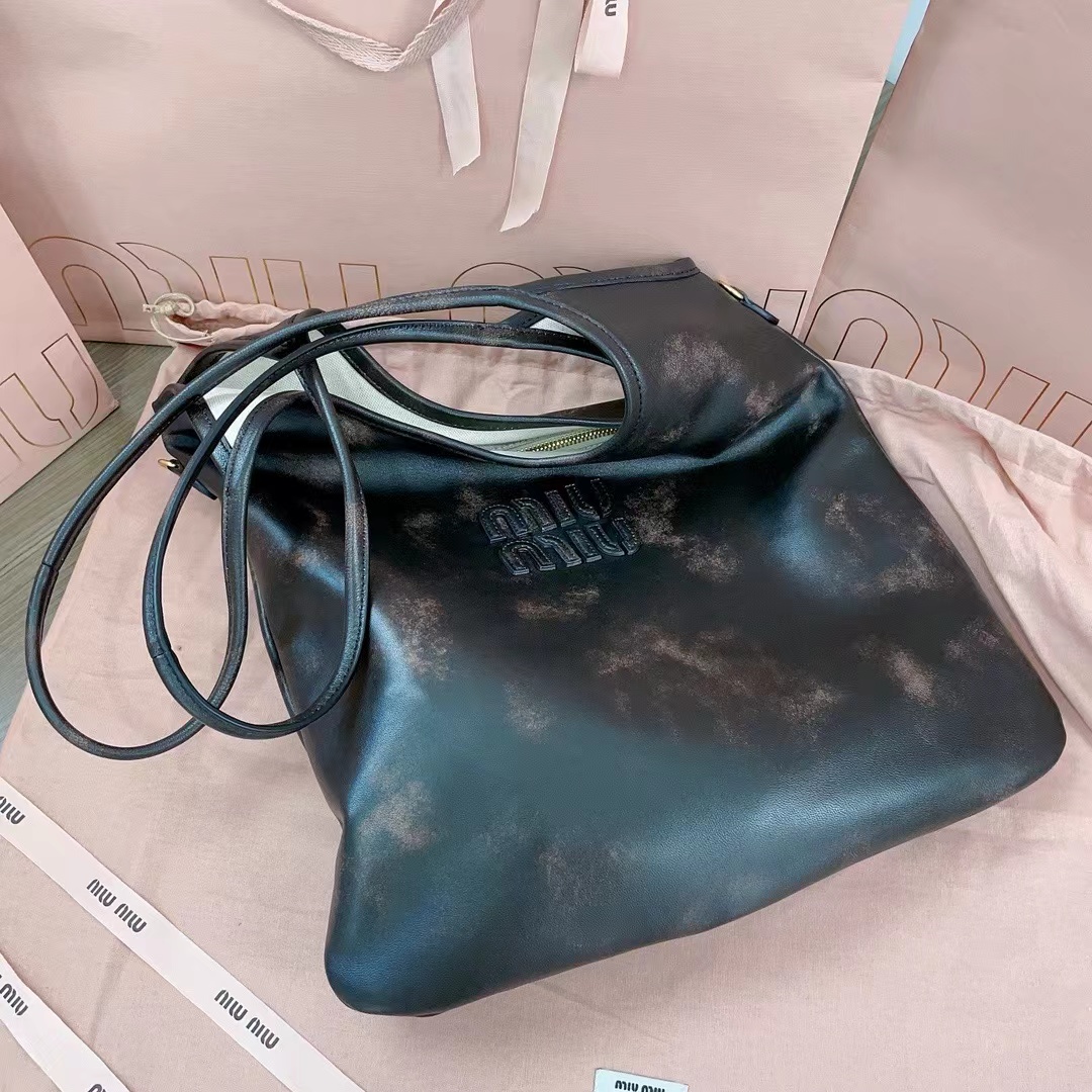: حقيبة MiuMiu الجديدة المقسمة مصنوعة يدويًا ومصنوعة من مجموعة متنوعة من الجلود. التصميم الجريء والمبتكر يفسر بشكل مثالي موقف Miu الانتقائي وغير الرسمي والشامل تجاه الحياة. هذه الحقيبة رائعة وثابتة ، دمج عناصر ملابس الرجال والنساء، كاجوال وكسولة، طبيعي وسهل، مليء بالشخصية، سعة كبيرة للغاية وخفيفة جدًا، بطانة قماشية جديدة، مشهورة في جميع أنحاء العالم، يحب نجوم الموضة الرئيسيون حملها، الحجم: 34 × 23 × 12 سم ( مع العبوة الأصلية)