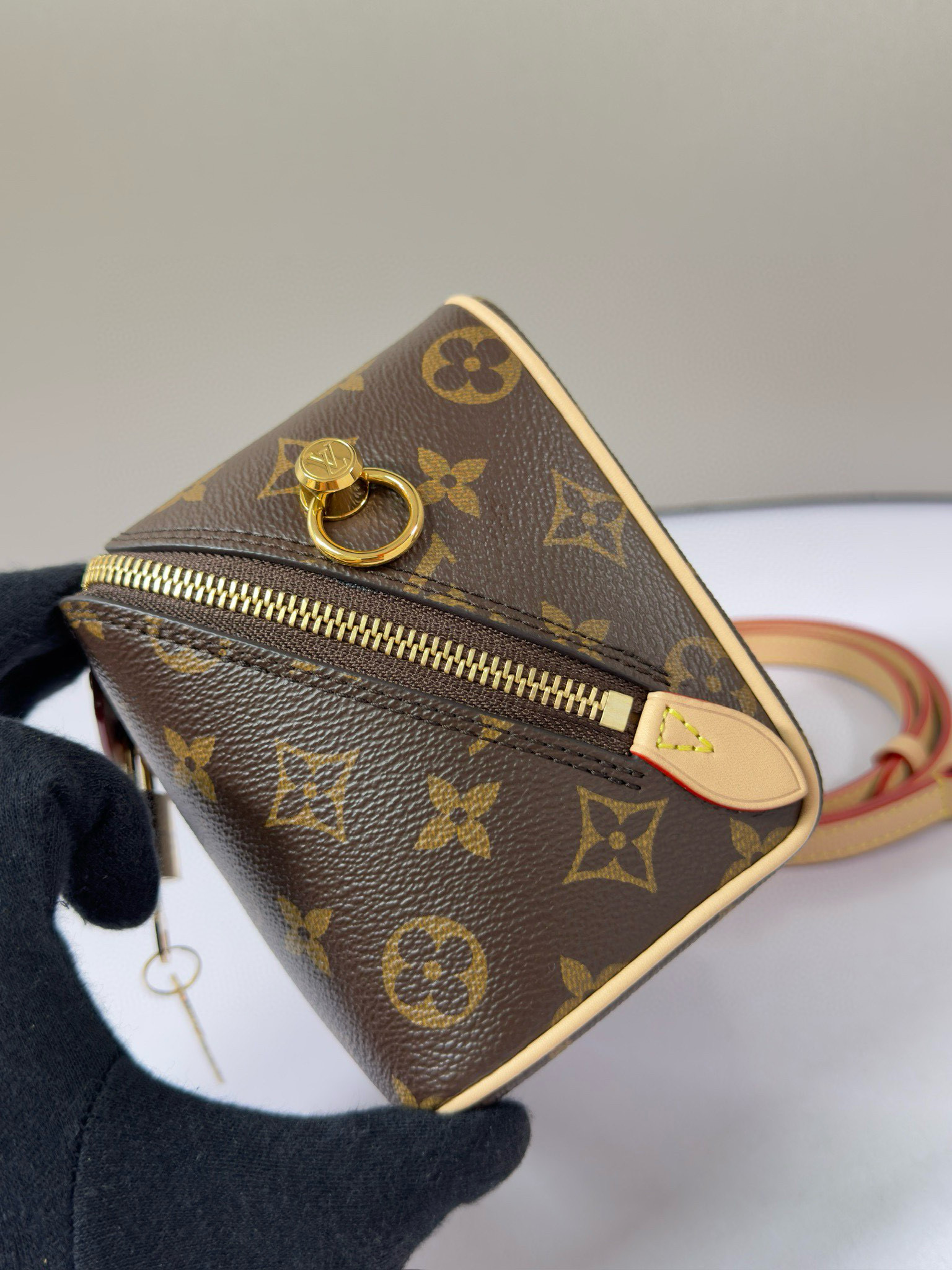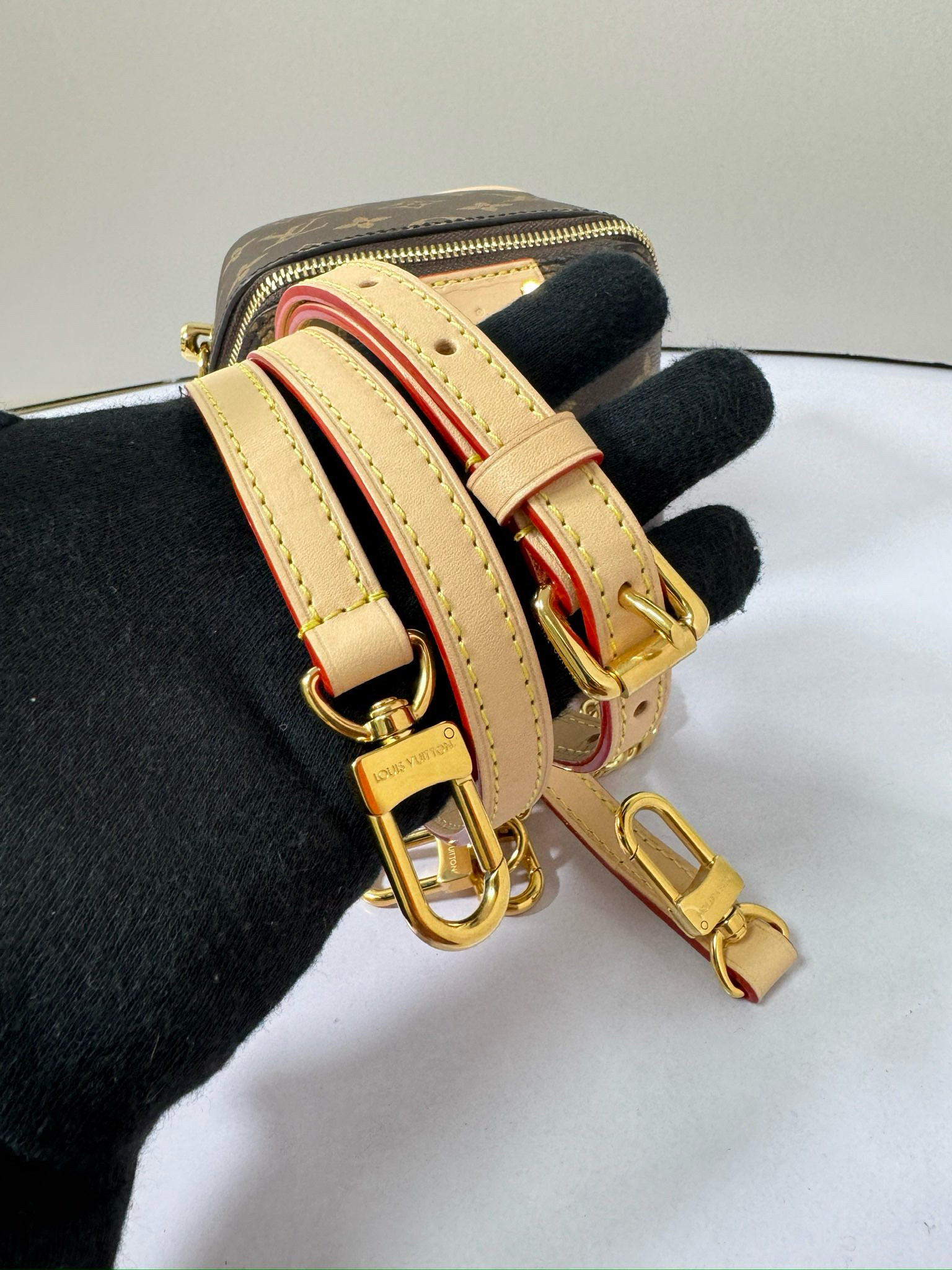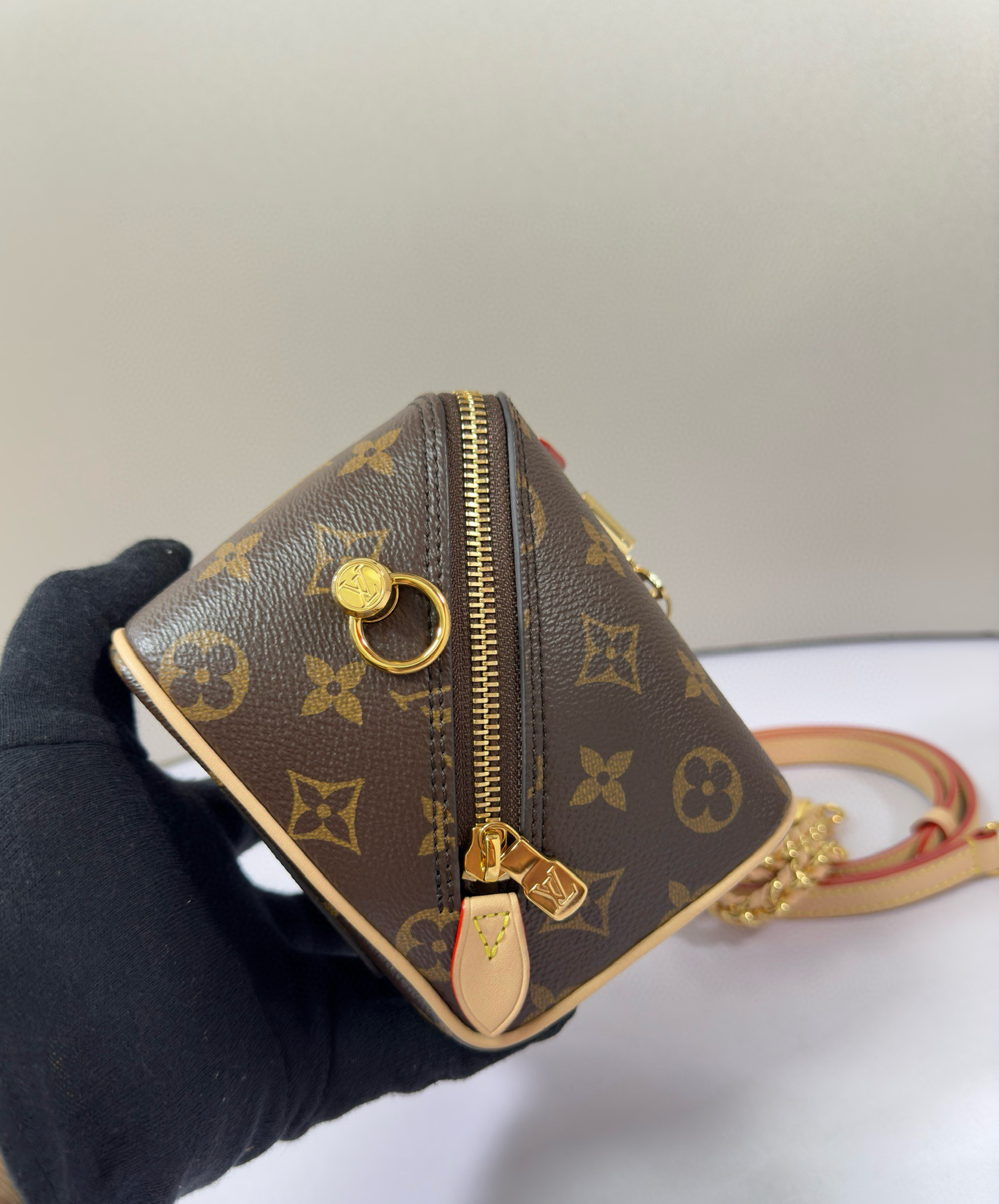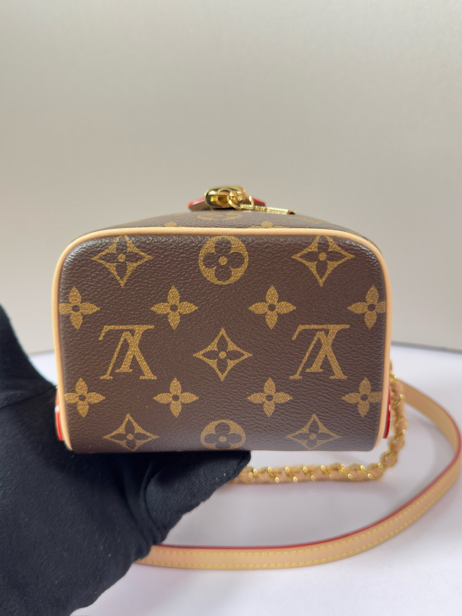 تعود حقيبة اليد Just In Case إلى تراث السفر الخاص بالعلامة التجارية، وهي مصنوعة من قماش Monogram وجلد البقر لخلق شكل مضغوط يمكنه استيعاب الهواتف المحمولة والمفاتيح ومستحضرات التجميل وغيرها من الضروريات اليومية. يظهر القفل وحقيبة المفاتيح تفاصيل كلاسيكية، كما أن السلسلة الجلدية المضفرة وحزام الكتف الجلدي قابلان للفصل، مما يسمح لك بالتبديل إلى خيارات الحمل الحديثة.