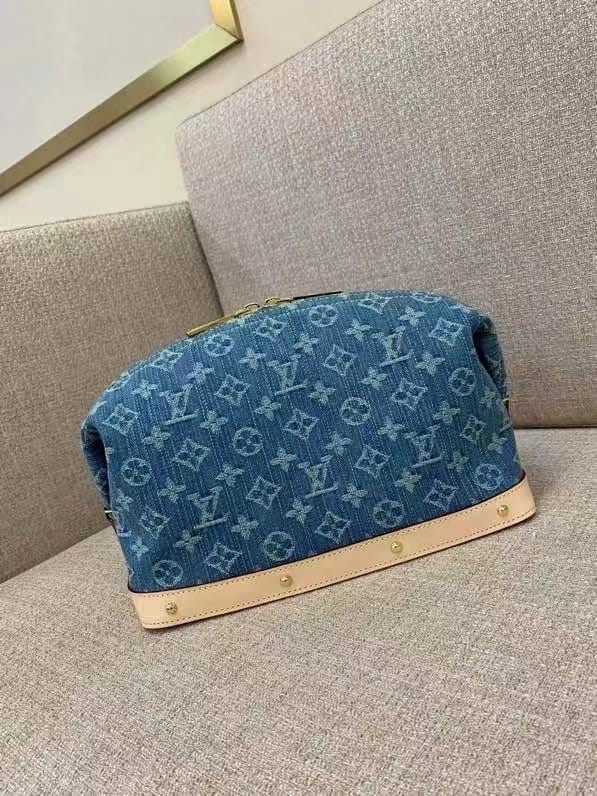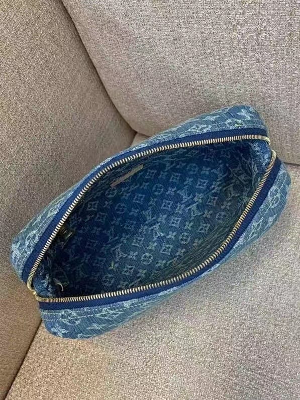 حقيبة مستحضرات التجميل Pochette Cosmétique هذه مصنوعة من قماش Monogram Denim بمظهر عصري وغير رسمي. ألوان دنيم باهتة عصرية، قماش قطني معتمد مصبوغ مع زخرفة من جلد البقر ومسامير مبهرة. مساحة كبيرة لاستيعاب مستحضرات التجميل والأغراض الشخصية الصغيرة، مما يجعلها رفيق سفر جيد الحجم: size:27 cm