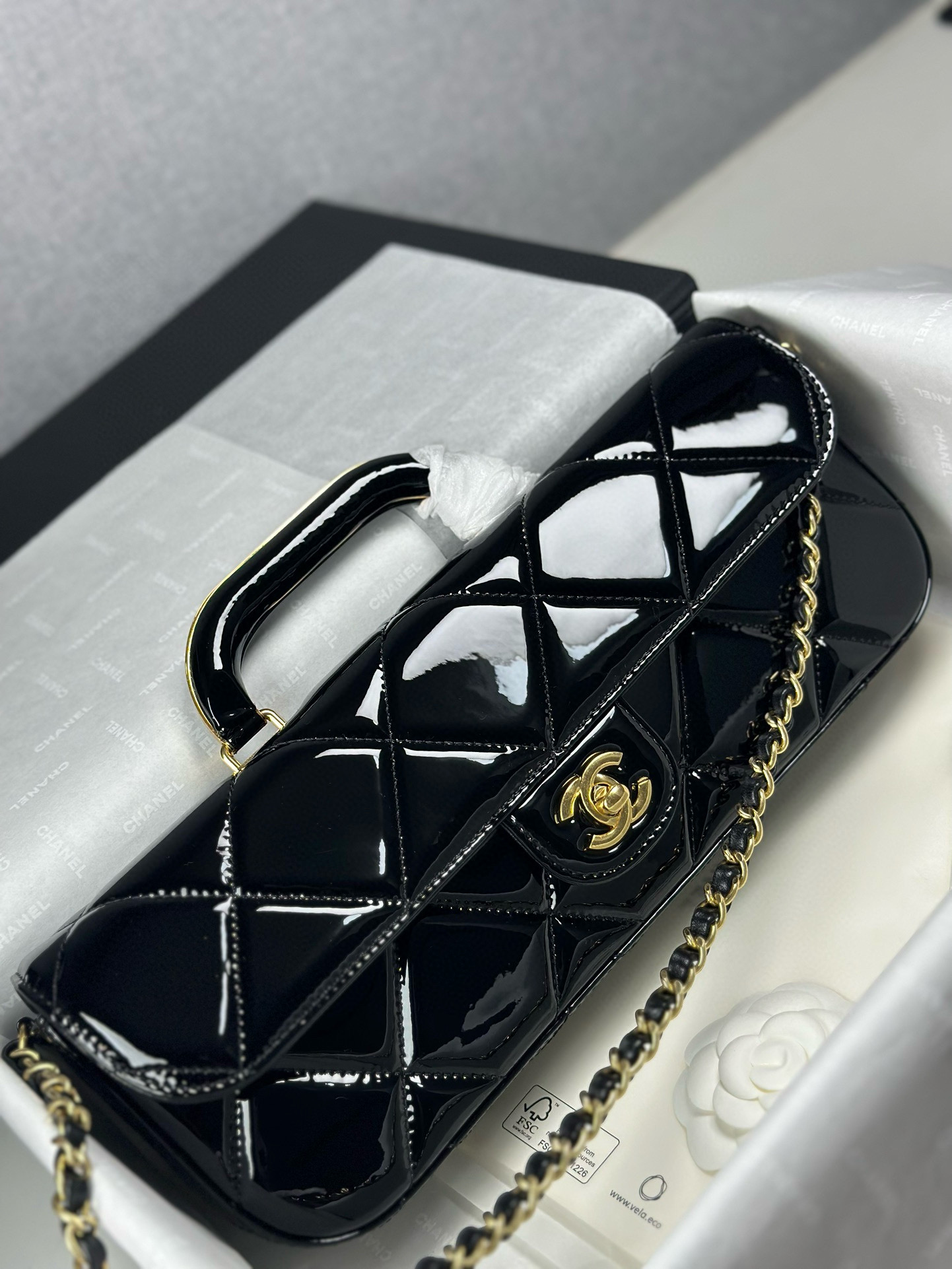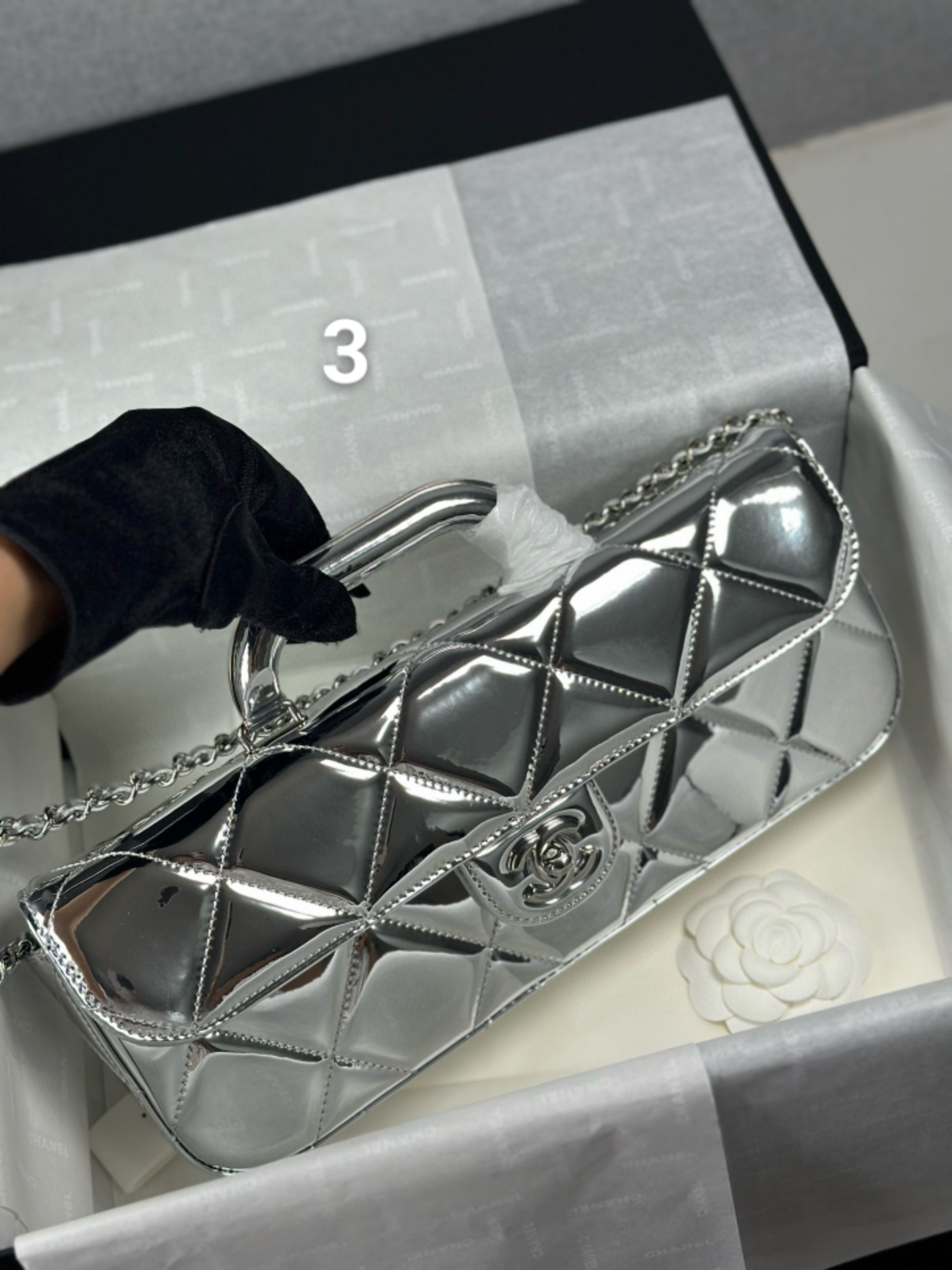 شانيل 🆕 25k عرض نفس الفئة ❤️ حقيبة مقبض جلدية فضي