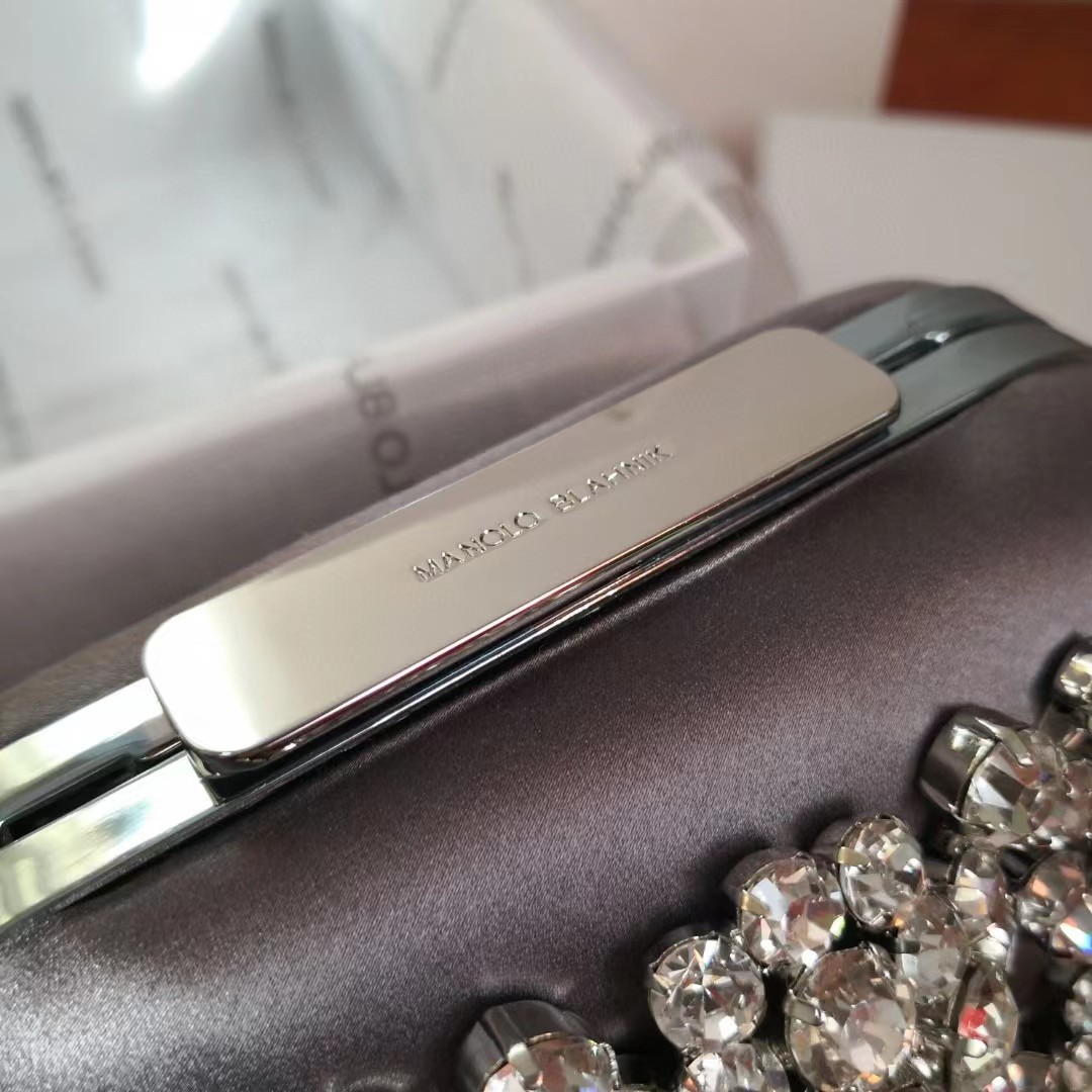 تتميز حقيبة MB Satin Square Clutch بإغلاق أمامي من سواروفسكي وسلسلة قابلة للفصل مع خيارين للطول. الجزء العلوي: 100% من الساتان الحريري. البطانة: 100% جلد نابا. الإبزيم: كريستال سواروفسكي، صنع في إيطاليا. الارتفاع: 15.8 سم. الطول: 17 سم. العرض: 7.3 سم