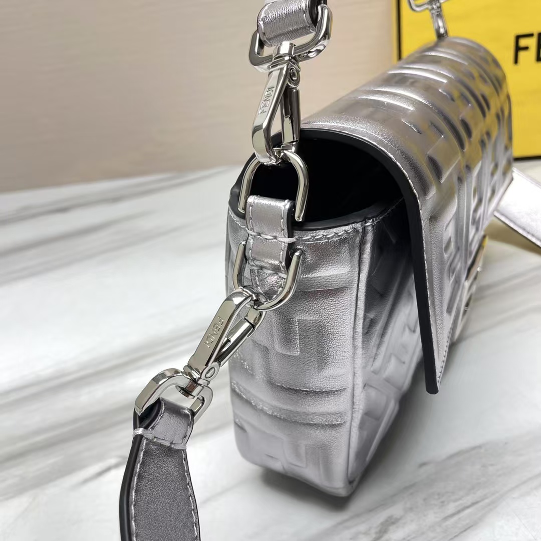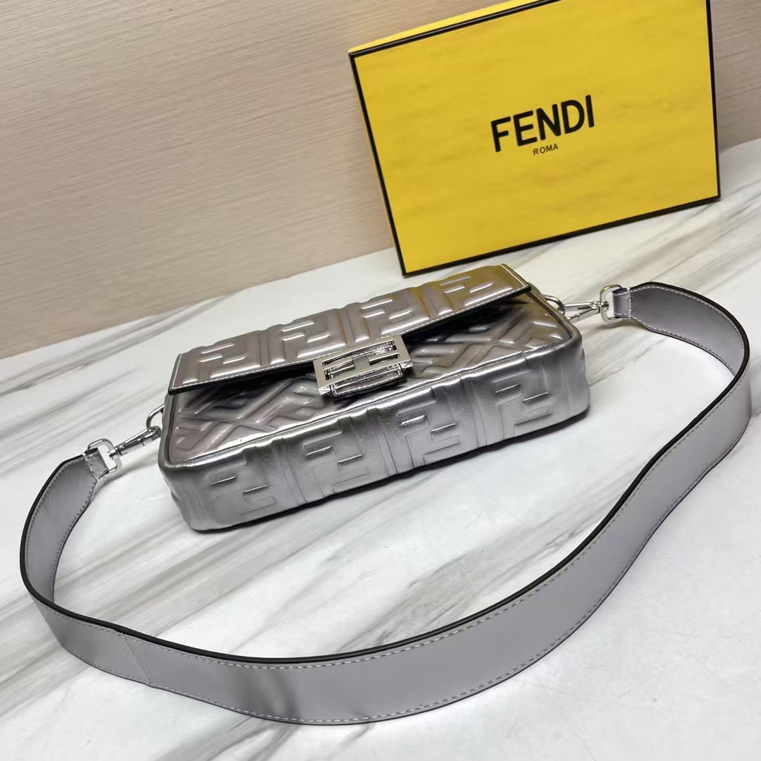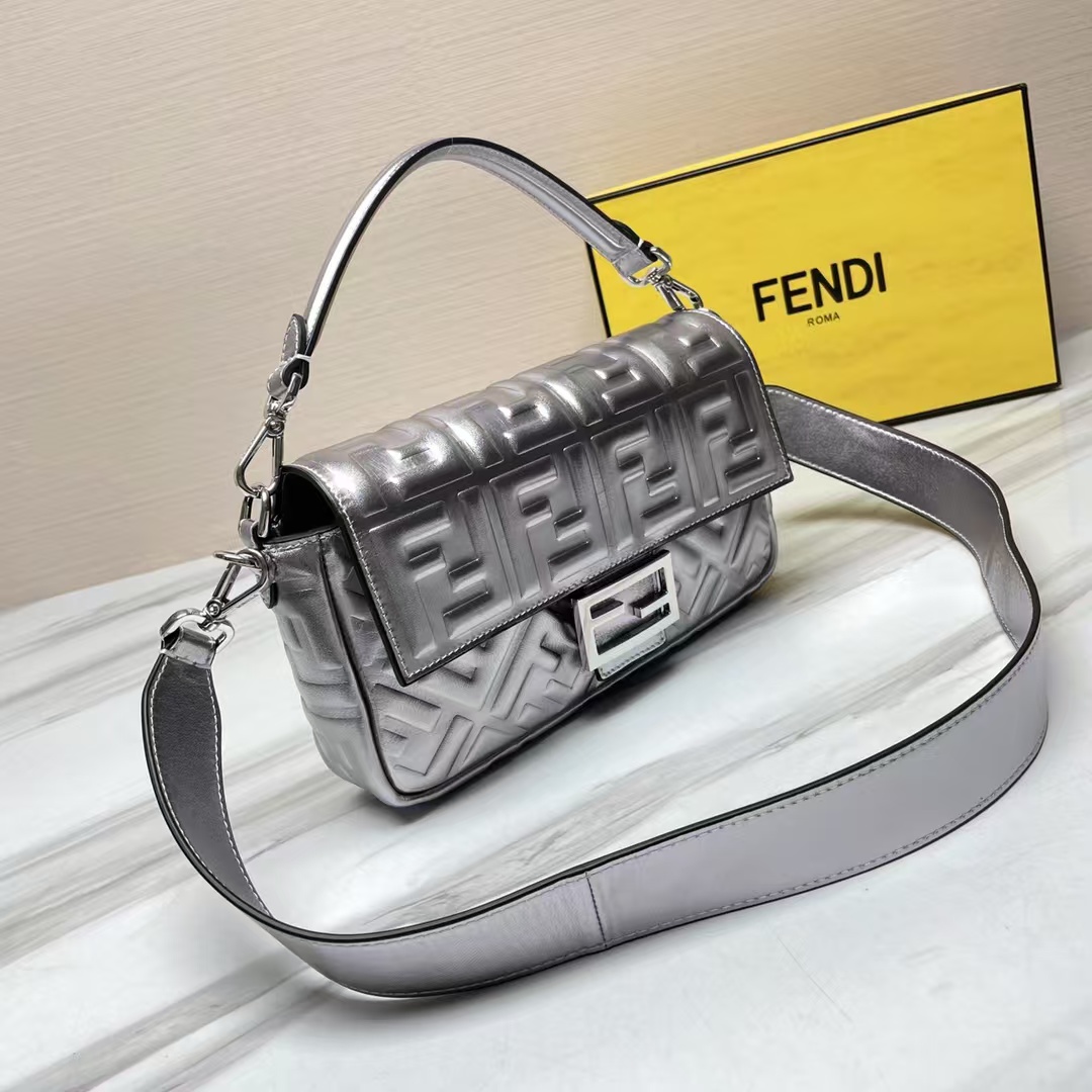 حقيبة باجيت من الجلد بالكامل 19 سلسلة كلاسيكية منقوشة بشعار Baguette FF #إنها ليست حقيبة، إنها حقيبة باجيت!