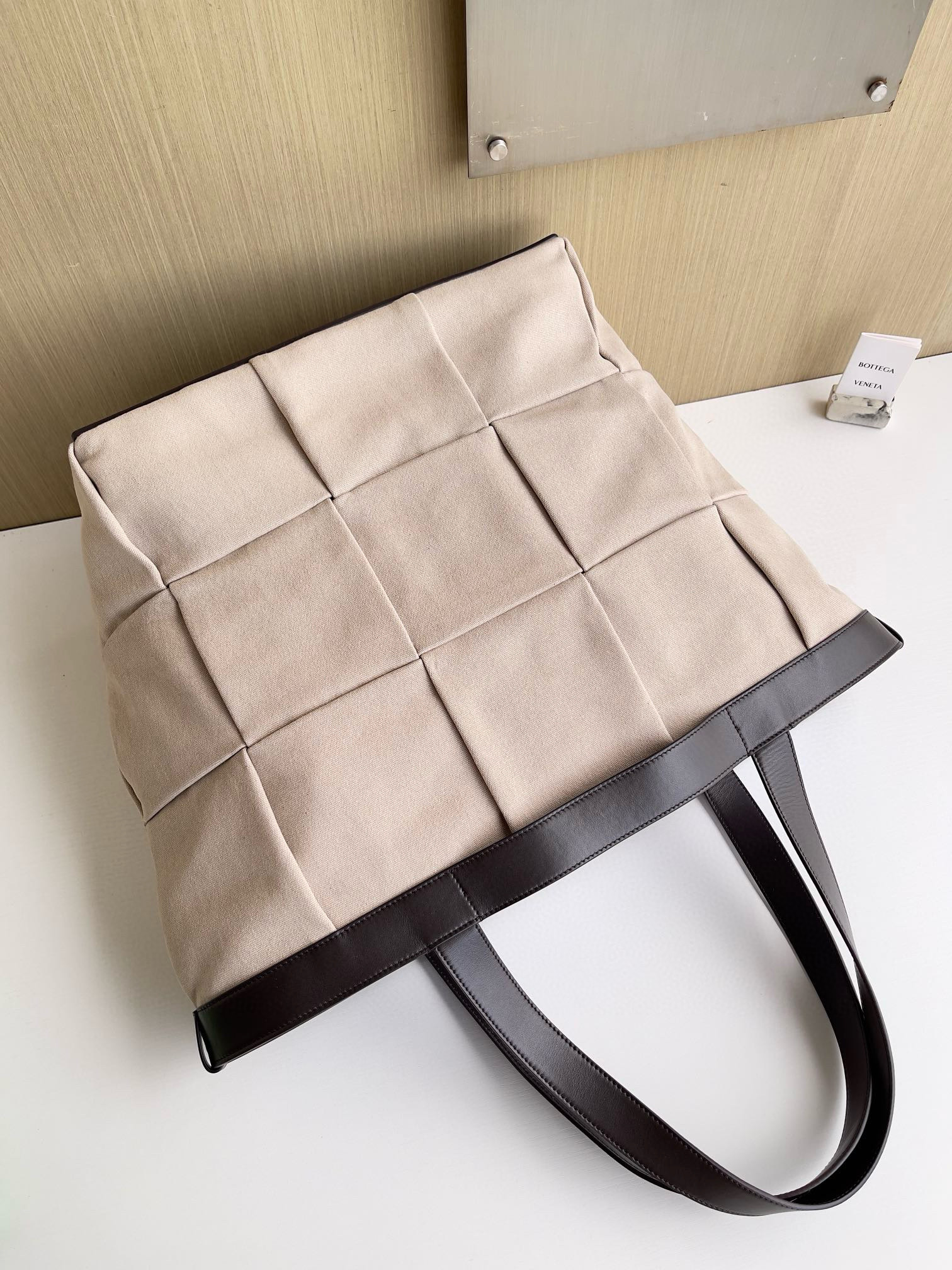 بوتيجا حقيبة اليد ARCO من VENETA Bottega Veneta ترث عناصر النسيج BV والتصميم المبتكر، وتمزج بين النعومة، وتتميز بمظهر لطيف وسخي، فهي جذابة وكبيرة السعة يمكنها حمل جهاز لوحي، وكمبيوتر محمول، وسترة للحماية من الشمس يجب اقتناؤه للتسوق، وهو عملي بالفعل ويعتمد الأداء أيضًا على الحقيبة القماشية، ويختلف تصميم الإبزيم البرجي المُضاف حديثًا عن صلابة السحاب، فهو يحمي العناصر من السقوط بسهولة ويضيف إحساسًا بالبرودة. ويأتي مع حبل جلدي صغير يستخدم كمشبك رئيسي لمنعه من السقوط، ولا يبدو تنقل الطلاب والعاملين في المكاتب مبالغًا فيه.