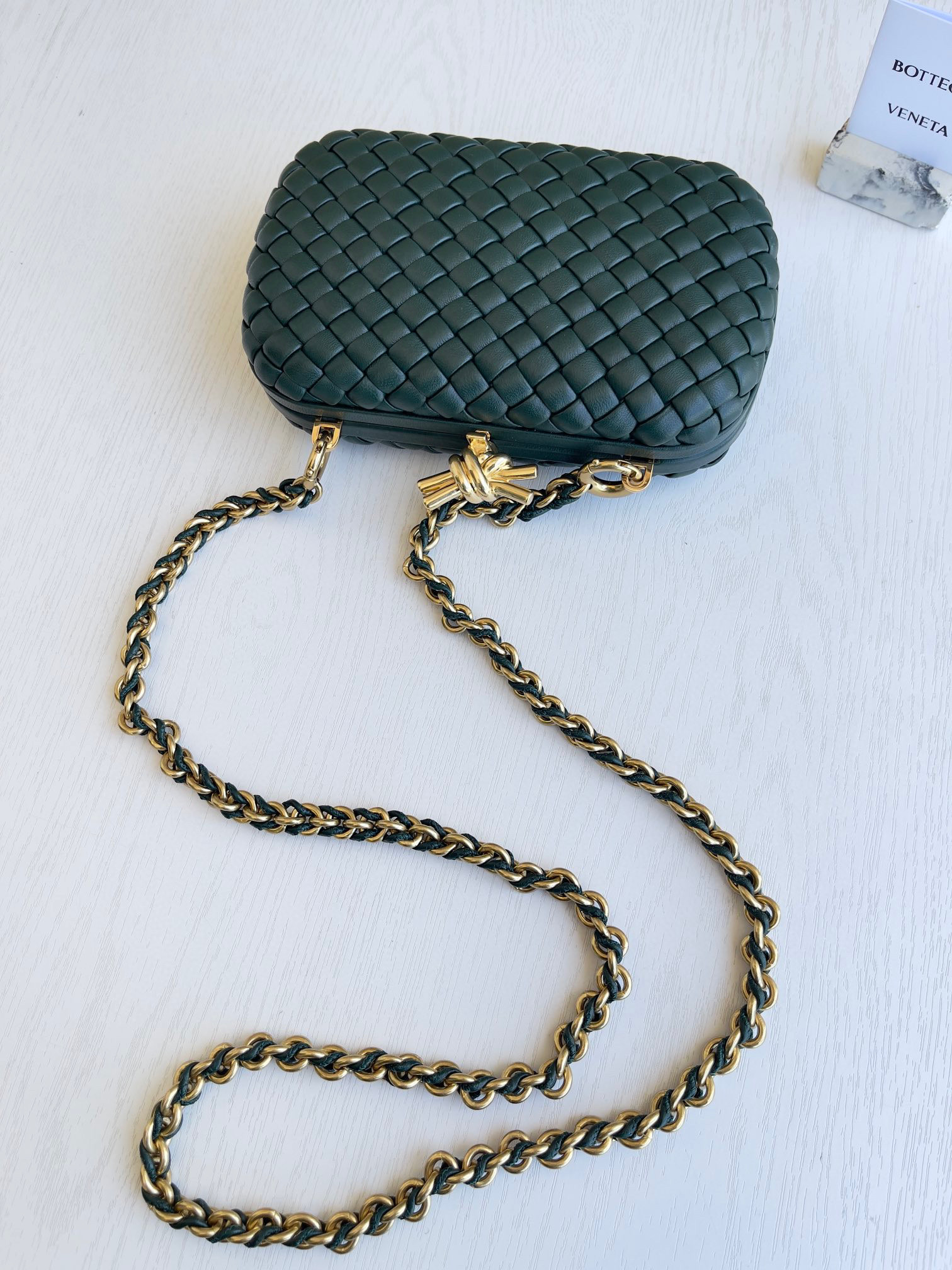 نسخة سلسلة حقائب السهرة من BOTTEGA VENETA KNOT متاحة الآن في الأسواق! هذه الحقيبة رقيقة وأنيقة وناعمة وقوية، وهي بالتأكيد تمثل المرأة المثقفة. وباعتبارها نموذجًا دائم الخضرة لعائلة BV، فإن نعمة السلسلة هي زينة الكعكة. ويفسر النسيج الكلاسيكي مرة أخرى الحرفية الفريدة.