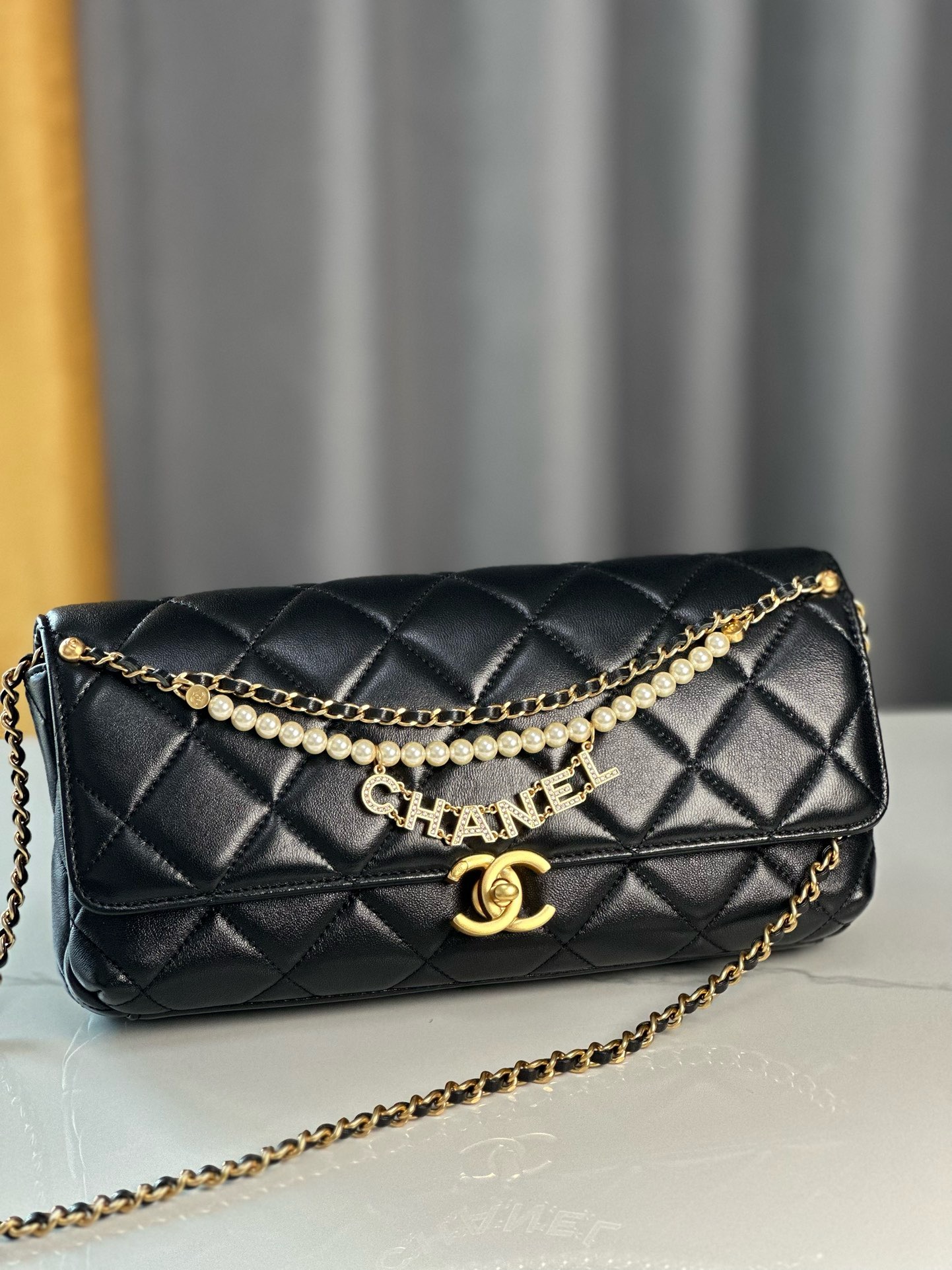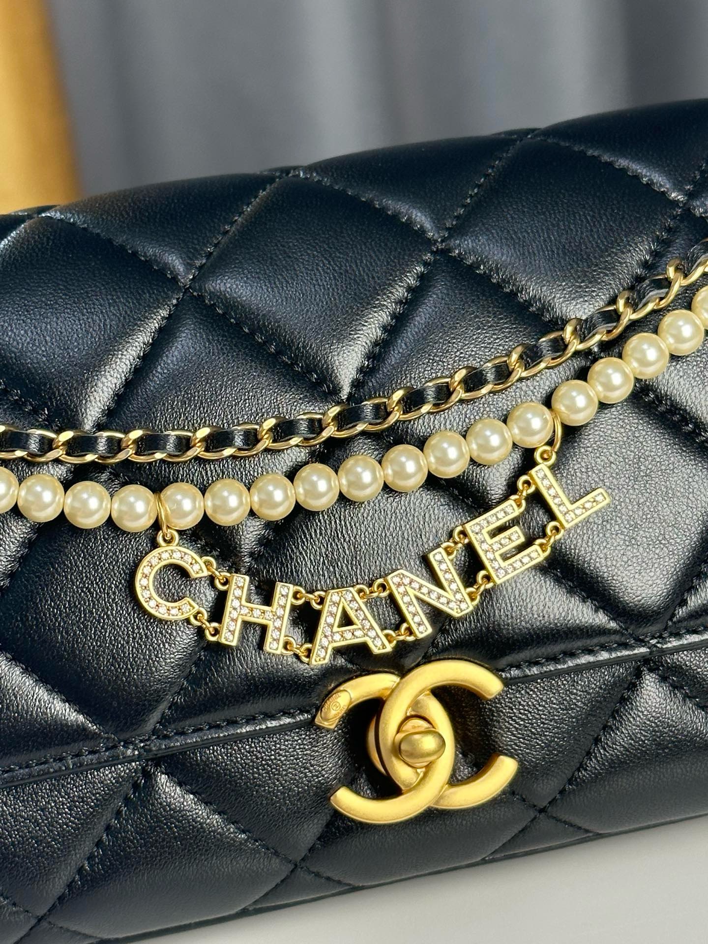 عنصر سلسلة جلدية + لؤلؤة + قلادة حرف شانيل هي حقيبة باغيت رائعة للغاية ومستقبلية ورائعة للغاية 🖤