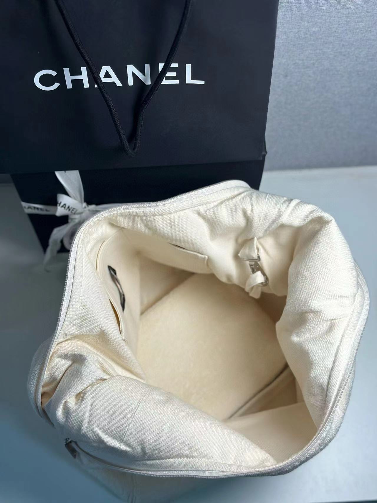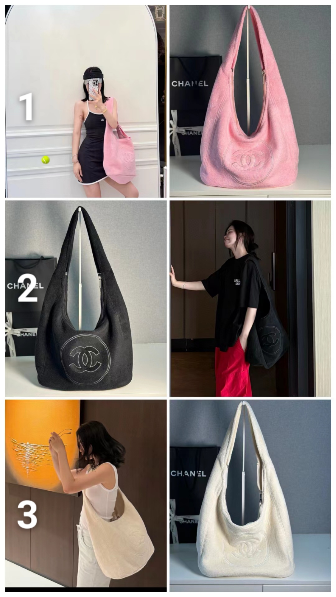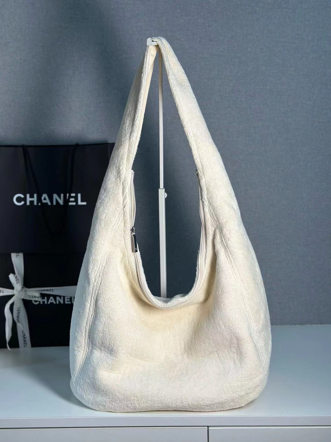 تتميز بتطريز كلاسيكي منقوش بشعار CC وجيب داخلي صغير! مصنوعة بالكامل من قماش منشفة الحمام، هذا التصميم مذهل حقًا! ملمسها الأنيق البسيط يُجسّد جوهر الشاطئ.