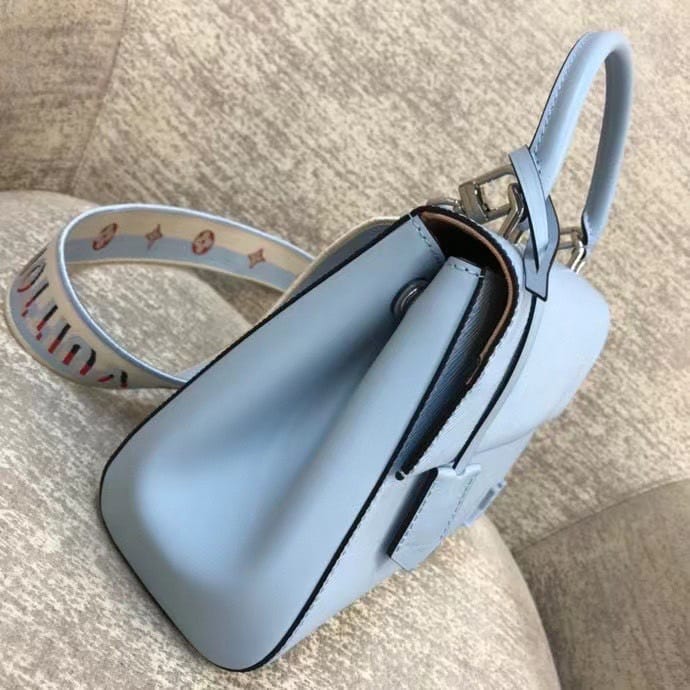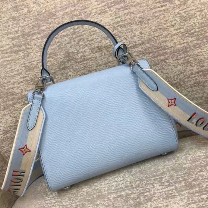حقيبة اليد الصغيرة Cluny BB M59134 باللون الأزرق السماوي مصنوعة من جلد Epi مع نسيج قطني مضلع جديد، مع شعار LV من الراتنج الناعم وبطانة مشرقة. يضفي حزام الكتف ذو الوجهين والقابل للإزالة المصنوع من قماش الجاكار الملون إحساسًا عصريًا، مما يجعله مناسبًا للمناسبات الرسمية أو غير الرسمية.