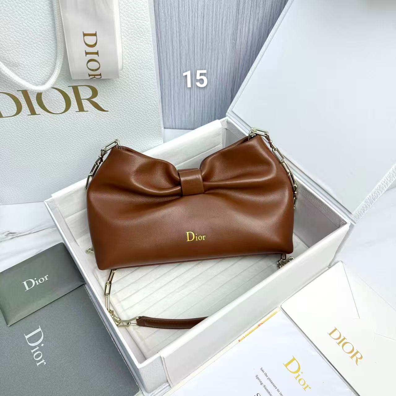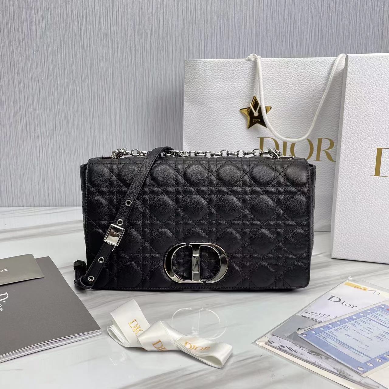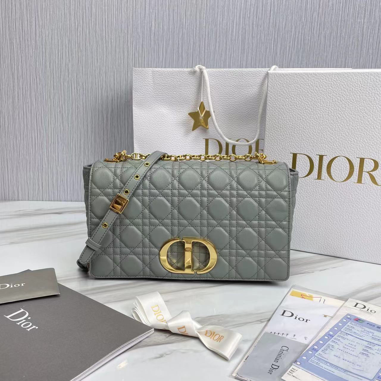 حقيبة  حقيبة Dior Caro الجديدة مصنوعة من مادة ناعمة وتتميز بغطاء بمشبك معدني على شكل حرف “CD” بلمسة نهائية ذهبية عتيقة، مستوحاة من إغلاق زجاجة عطر Christian Dior. يأتي مزودًا بحزام كتف قابل للفصل على شكل سلسلة “CD”، ويمكن أيضًا استبداله بحزام كتف عريض مطرز، مما يجعله أكثر أناقة وعصرية. يمكن ارتداؤه بسهولة سواء كان مظهرًا يوميًا أو حفل عشاء. إغلاق بغطاء قلاب بإبزيم “CD” على شكل مقبض وشعار “30 Montaigne” منقوش على الظهر. حزام كتف على شكل سلسلة “CD” قابل للإزالة والتعديل مع إبزيم “Christian Dior” على الطراز العسكري، وجيب داخلي بسحاب وجيب رقعة في الخلف، وجيوب جانبية. يمكن حملها باليد أو الكتف أو عبر الجسم