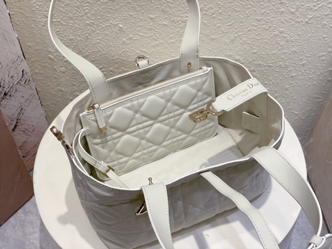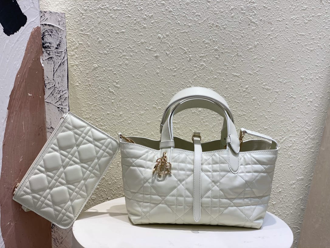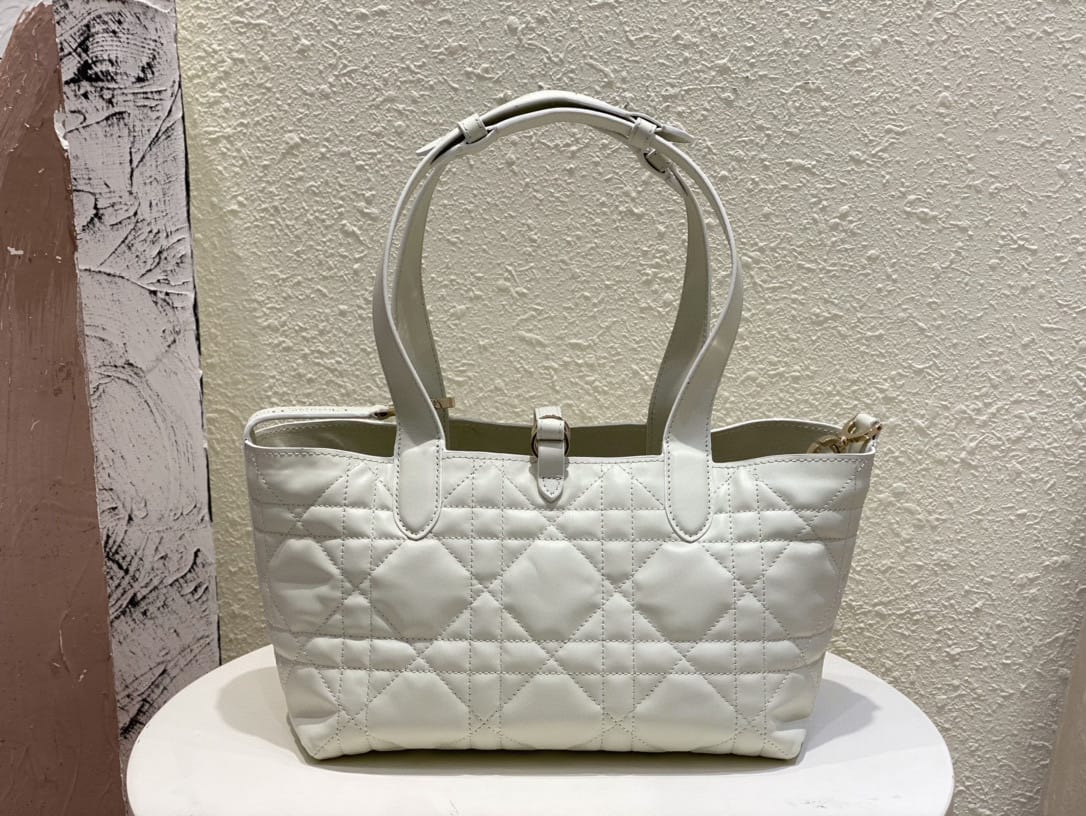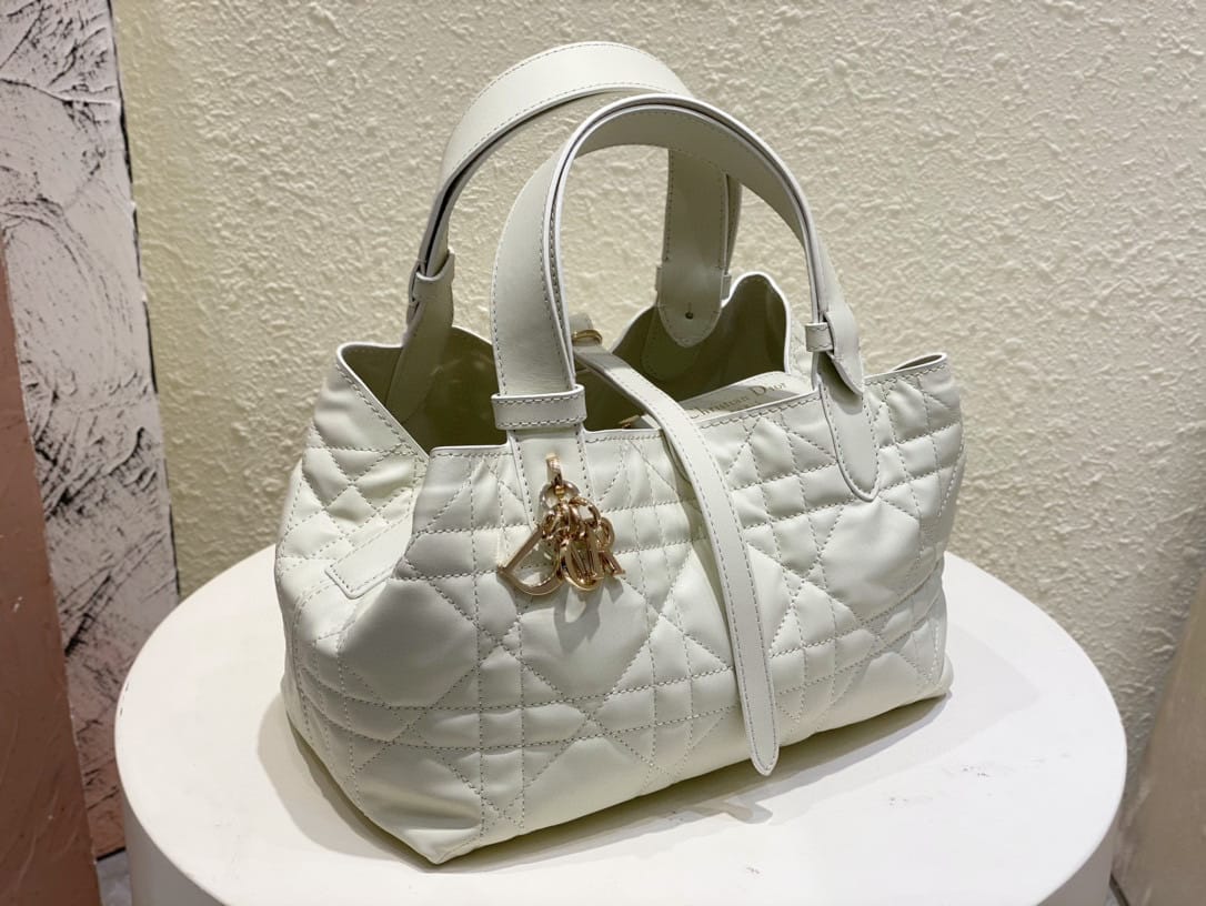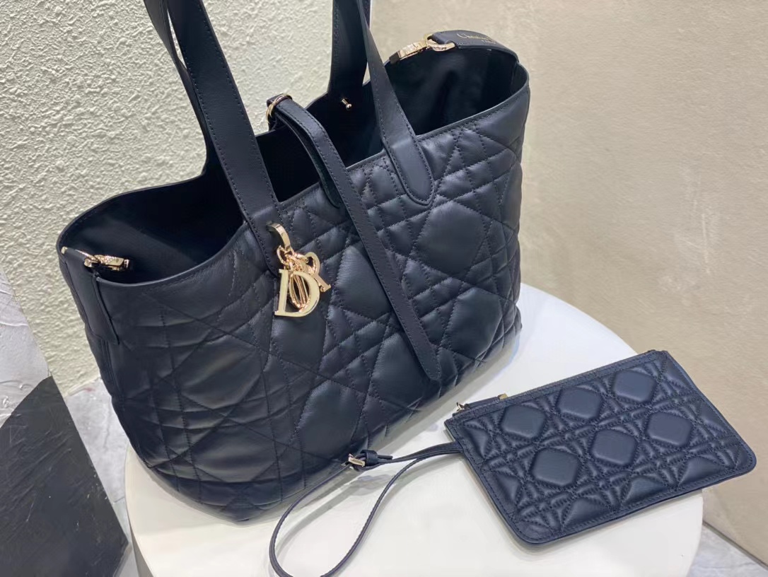 ظهرت حقيبة اليد Dior Toujours هذه لأول مرة بشكل رائع في عرض سلسلة ربيع وصيف 2023. فهي تتميز بتصميم كاجوال وعملي فريد من نوعه. مصنوعة بعناية من جلد البقر الأسود، ومزينة بخياطة علوية كبيرة الحجم على شكل كاناج، كما أن المقصورات الداخلية الواسعة مجهزة بجيوب صغيرة لتخزين مختلف الضروريات اليومية بشكل أنيق. يتميز بإغلاق من الجلد برباط لتخزين مجموعة متنوعة من العناصر بشكل آمن، وقفل على شكل حرف D على شكل مقبض CD يمكن تعديله على كلا الجانبين لتعزيز الأناقة. طراز متوسط مع مقابض جلدية مع تفاصيل قابلة للتعديل بحيث يمكن حملها باليد أو على الكتف.