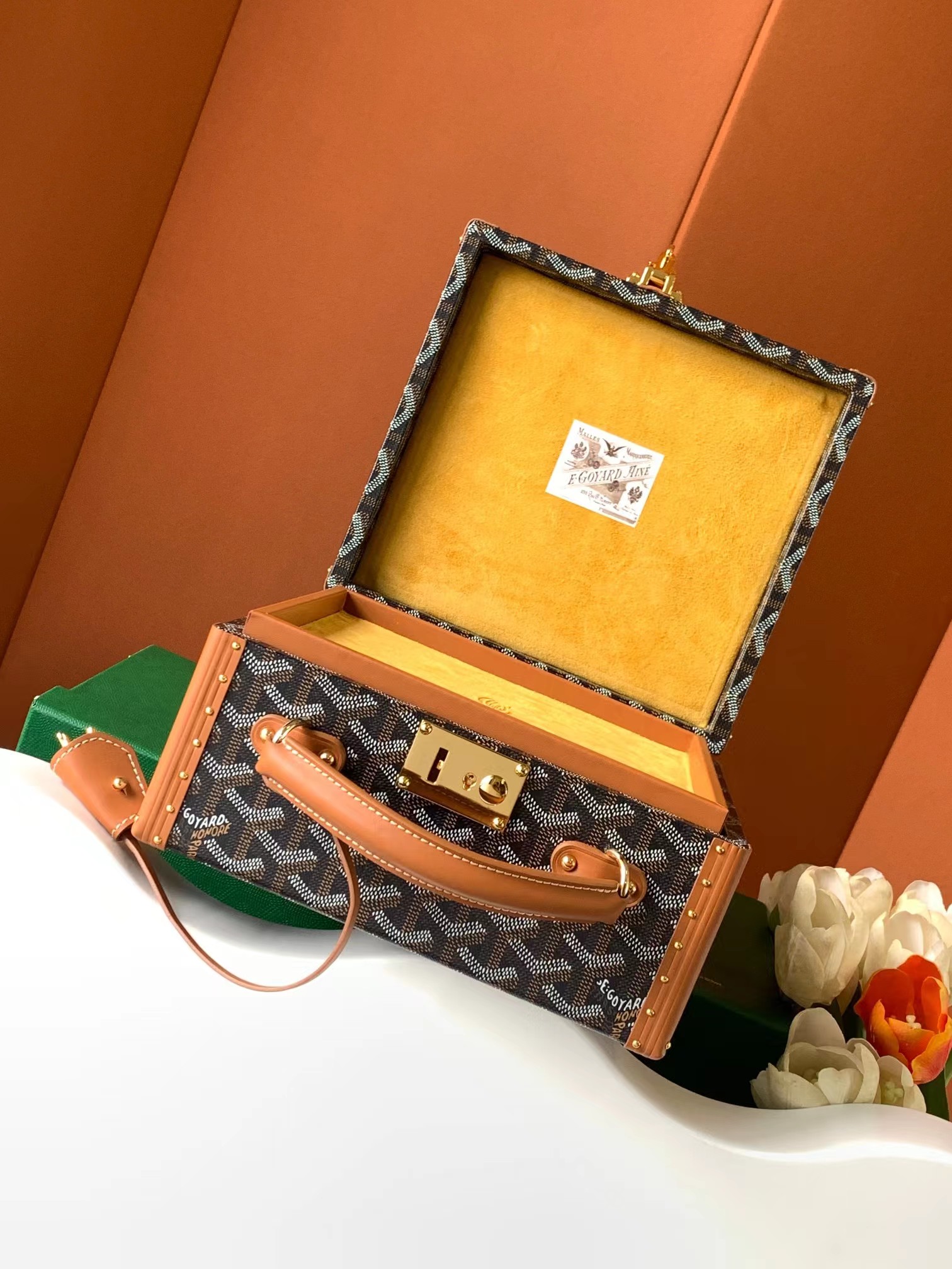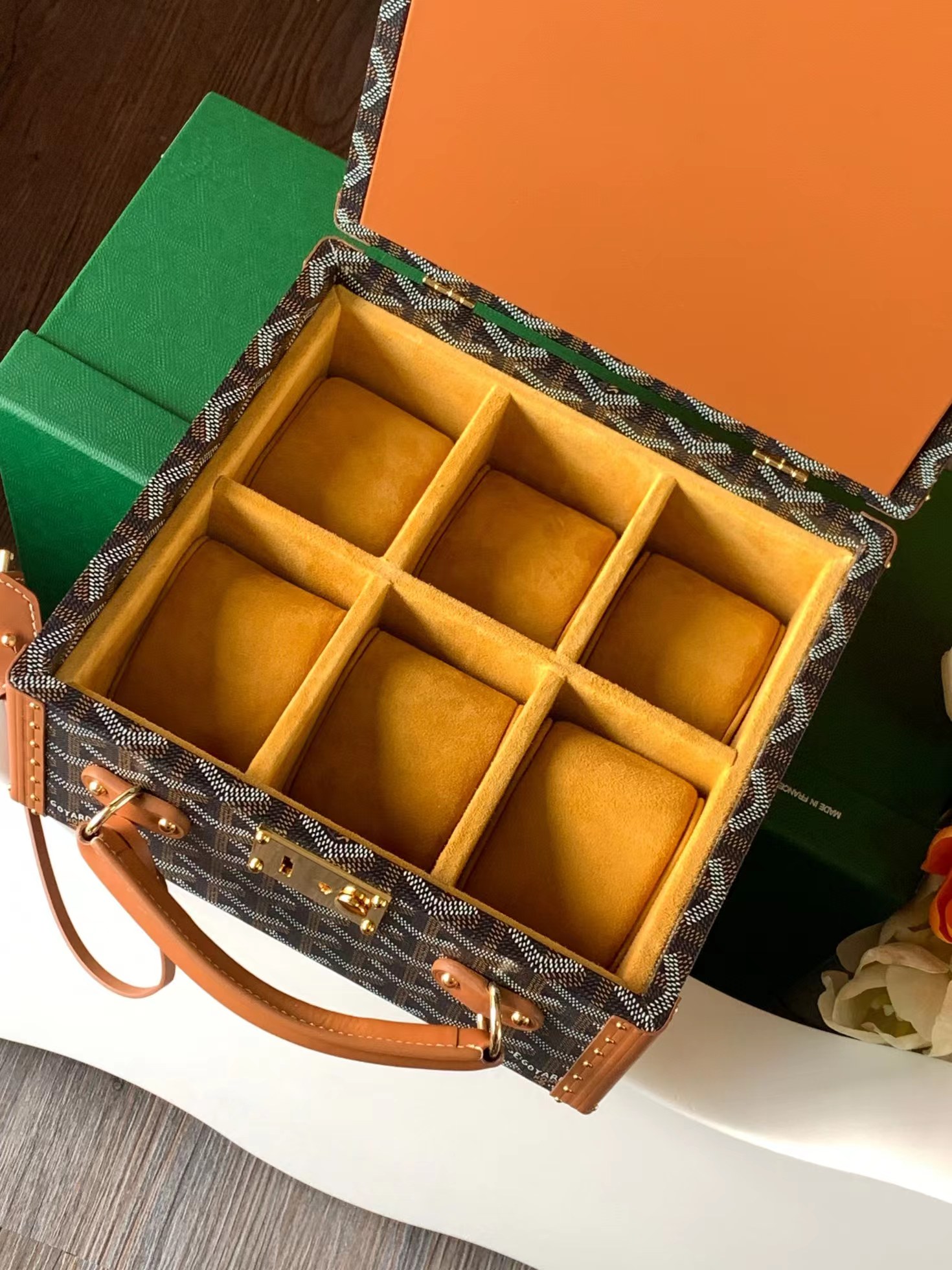 إنها تشتمل على براعة صناعة الأمتعة التي تعتز بها شركة GOYARD House. إنه مستوحى من نسخة الأمتعة لصندوق الساعة، بأحجام تتراوح من 4 إلى 8 شبكات❣️
