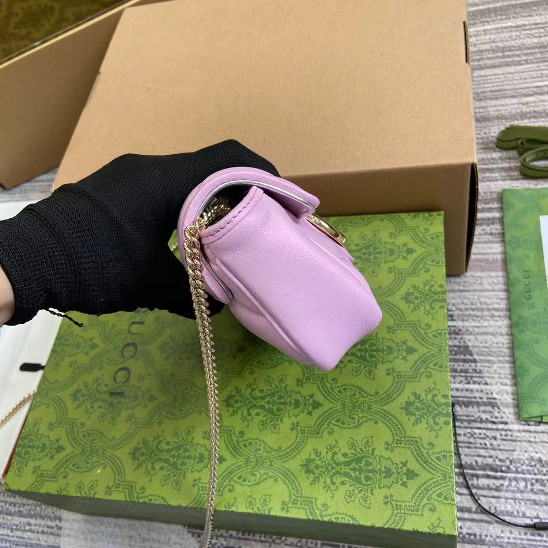 حقيبة يد GG مارمونت فائقة الصغر. تصميم ملحقات G المزدوج ضخ الجوهر التقليدي في النمط الحديث للعلامة التجارية ، مما يجلب قطعة واحدة دائمة إلى خزانة الملابس. هذه حقيبة اليد المصغرة مصنوعة من جلد V مع تأثير قوس قزح زرقاء ، مع حزام سلسلة.