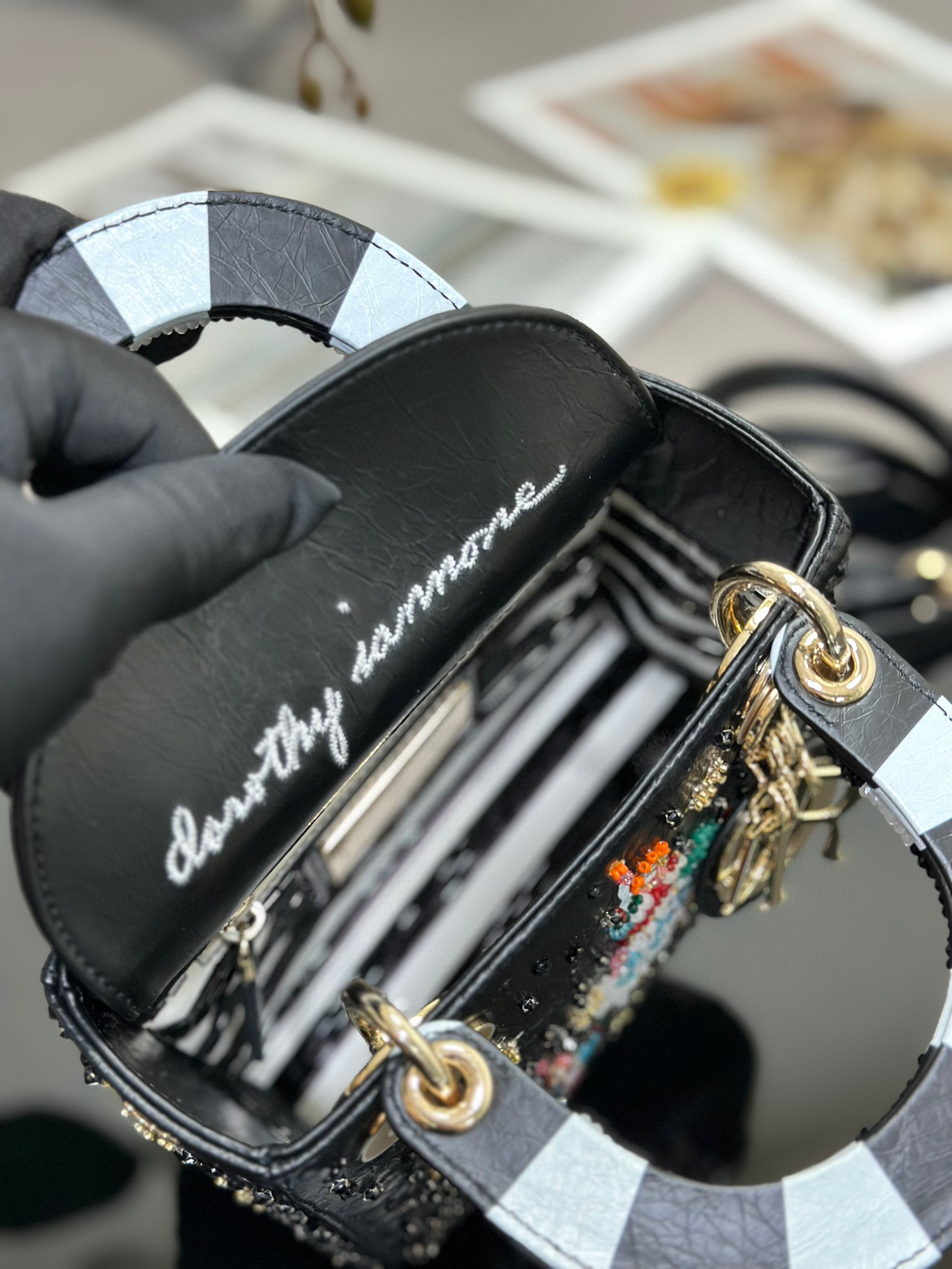 ❤️❤️خرزات Lady Dior مطرزة بثلاثة إطارات محدودة الإصدار، جميع الجلود من الداخل والخارج مربوطة يدويًا بالخرز. تمثل اللغة الإنجليزية في الداخل نمط الخرز الرائع، وهي مزينة بتطريز Liberty الفني بإصدار محدود، مما يسلط الضوء على براعة Dior الرائعة. والأناقة. تقترن بقلادة “D.I.O.R” المصنوعة من المعدن المطلي بالذهب الفاتح، مما يضفي لمسة من الرشاقة على الصورة الظلية الرقيقة. يأتي الطراز الصغير مزودًا بحزام كتف على شكل سلسلة قابلة للفصل ويمكن حمله باليد أو على الجسم، مما يجعله الرفيق المثالي لارتداء ملابس السهرة. حزام كتف على شكل سلسلة قابل للفصل، جيب داخلي بسحاب، يمكن مطابقته مع أحزمة كتف مطرزة أخرى، الحجم: 17 × 15 × 7 📸لقطة حقيقية حصرية🎞 يتم تسليمها في صندوق هدايا مغلف بالكامل🎁