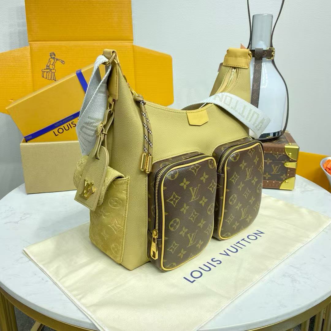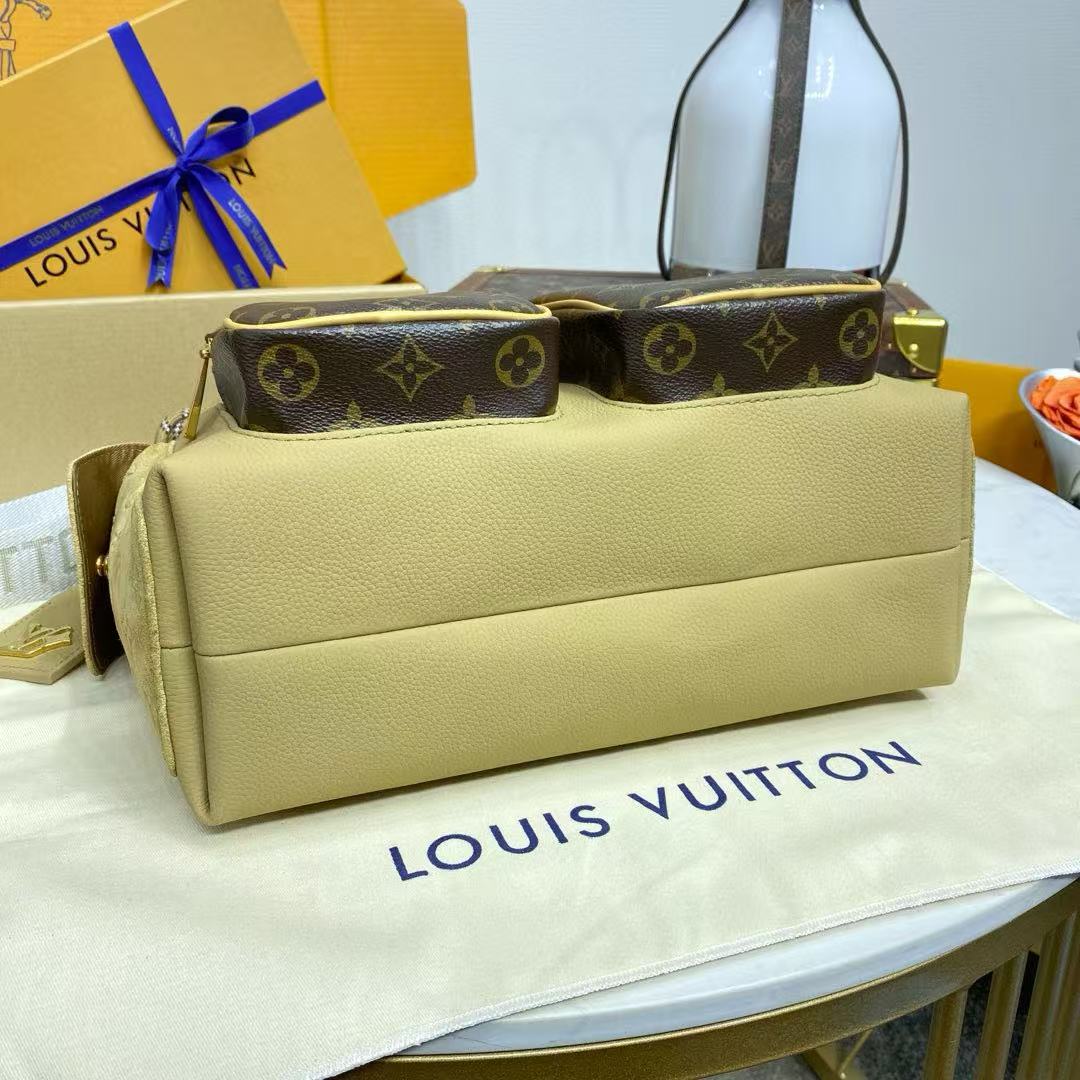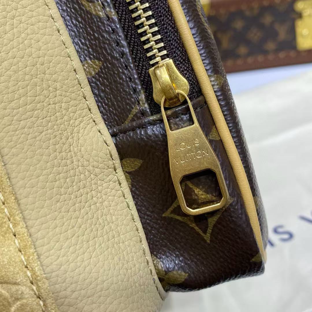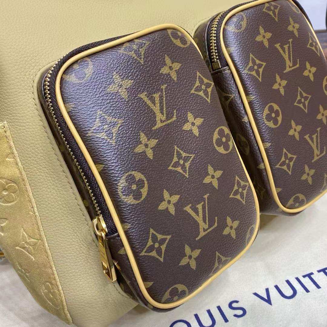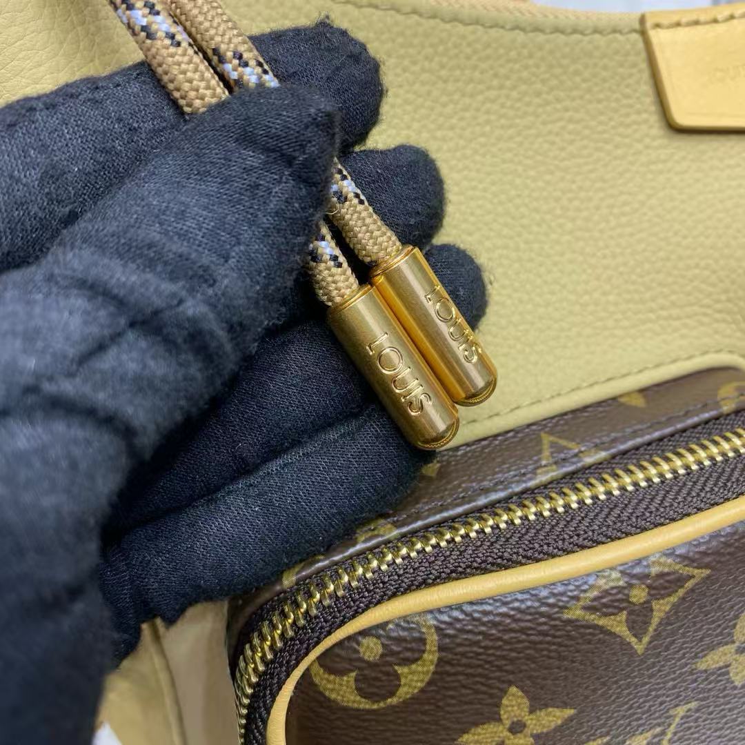 هذه الحقيبة مصنوعة من جلد البقر والحبوب المغلفة من مونوغرام، وتصميمها المدمج في طبقة رئيسية وجيوب سحابية أمامية وجيوب جانبية مفتوحة. يمكن تعديل الأحزمة النسيج لتحسين تجربة حمل مريحة