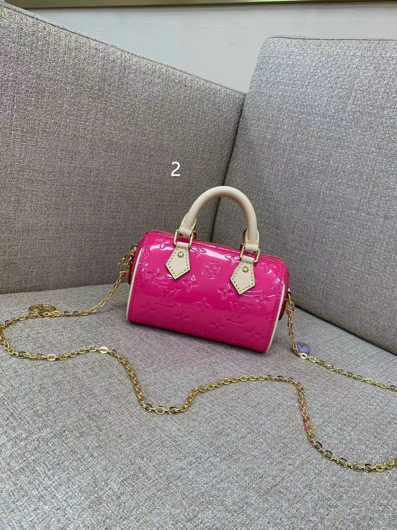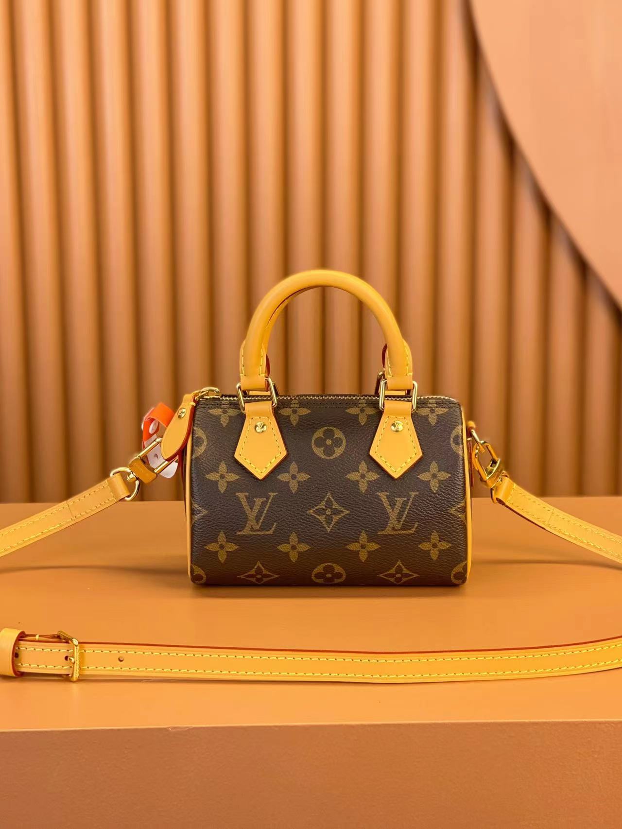 تُعد حقيبة Nano Speedy نسخة مصغرة من إحدى حقائب السفر الأكثر شهرة لدى الدار، وهي مصنوعة من جلد Monogram Vernis ذو اللون الفاتح الحجم المثالي للمحافظ الصغيرة
