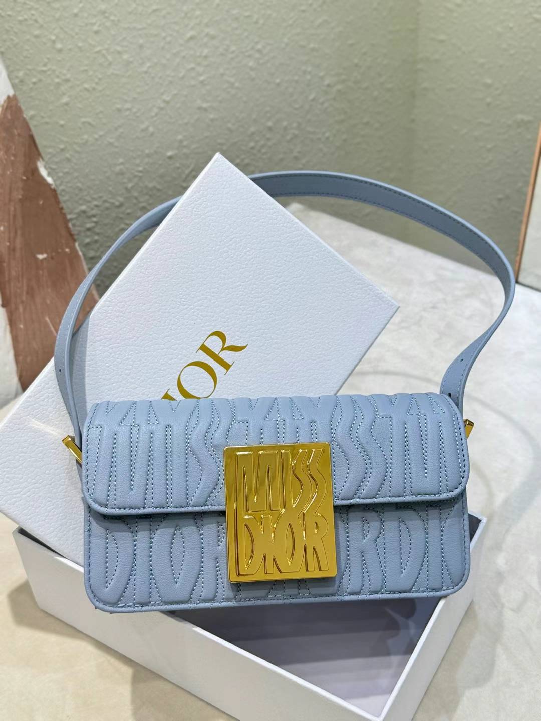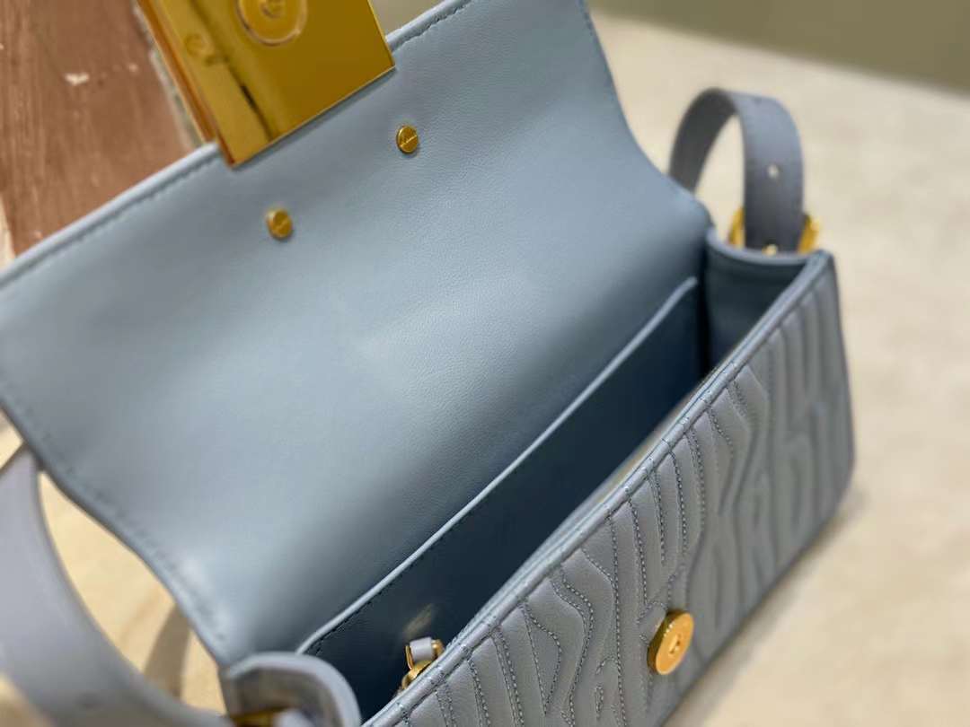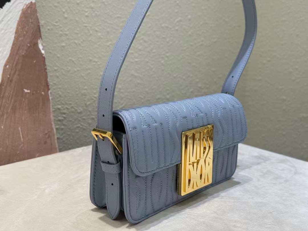 تم الكشف عن حقيبة اليد Miss Dior ذات الرفرف حديثًا في عرض سلسلة الملابس الجاهزة لخريف وشتاء Dior 2024، مما يعيد تفسير الأناقة العصرية لأنماط Dior الكلاسيكية. مصنوع من جلد العجل المبطن باللون الأزرق ومزين بنمط Miss Dior Allover المميز للمجموعة، وهو مستوحى من أرشيفات Marc Bohan’s Dior ويعيد تفسير أزياء الستينيات بلمسة عصرية. وهي مقترنة بلوحة معدنية أنيقة مع لمسة نهائية ذهبية عتيقة متباينة ومزينة بتوقيع Miss Dior، وتعكس جمالية خالدة، في حين تتميز الحجرة الرئيسية الموجودة أسفل الغطاء بجيب بسحاب للضروريات اليومية. مع الحزام القابل للتعديل، يمكن ارتداؤه على الكتف للحصول على مظهر أنيق ينضح بأسلوب الأزياء الراقية.