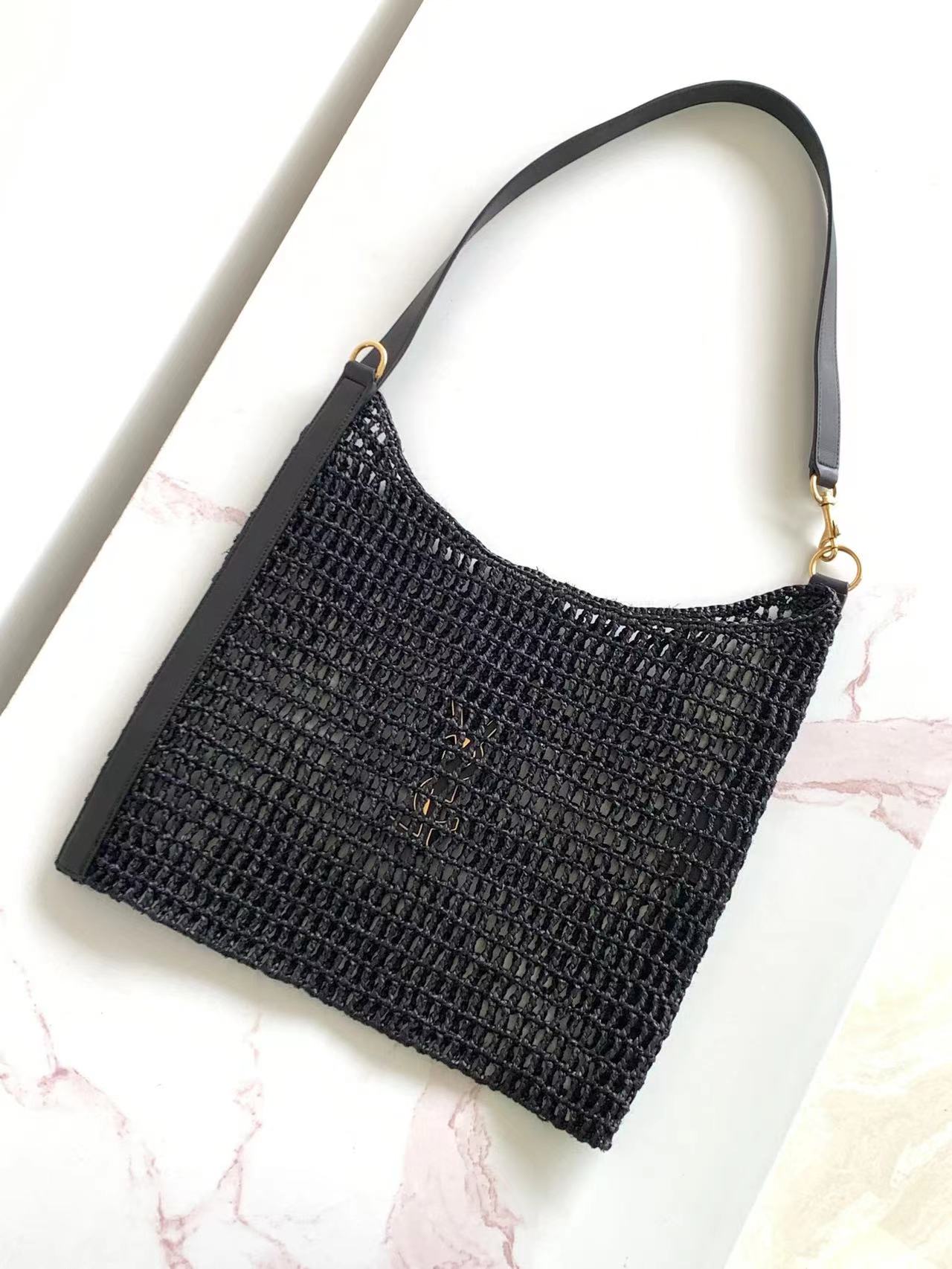 حقيبة الكتف المنسوجة مع حزام جلدي مزدوج مع LE CASSANDRE.