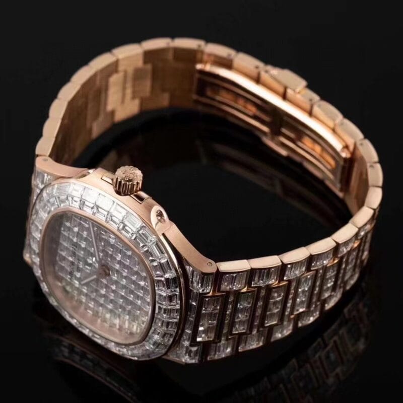 ساعة Patek Philippe 5719P ذهبية مربعة سلم كامل معدلة، ساعة ذهبية ماسية عيار 18 قيراط، القطر الخارجي 40 مم