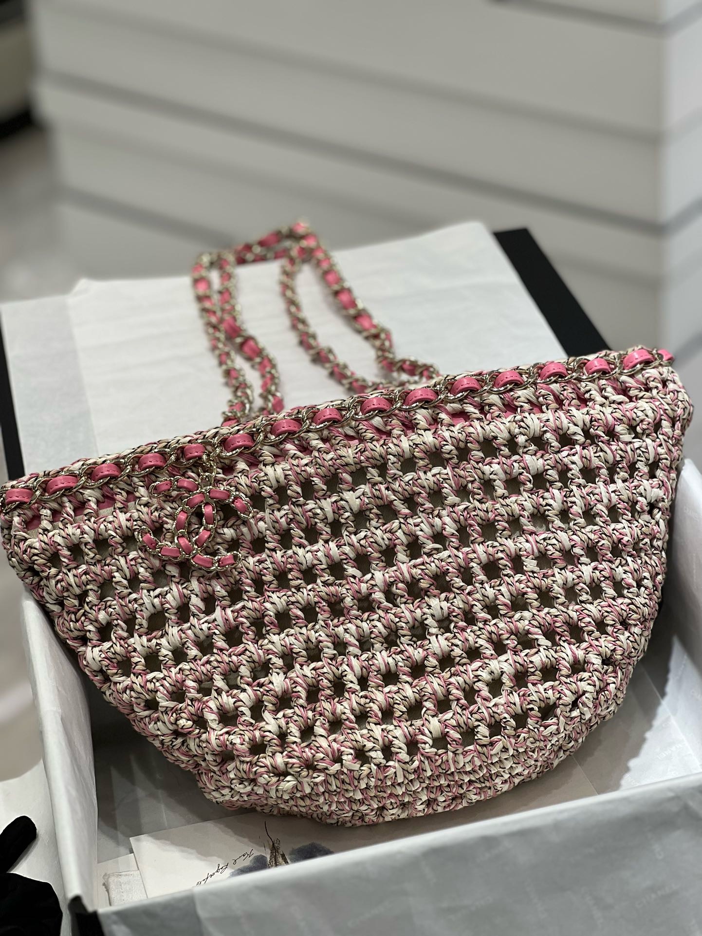 دعونا نلقي نظرة على الحقائب الجديدة التي اعتدت على تلك الأنماط العائدة ~ لذلك حصلت على حقيبة الرغيف الفرنسي هذه مع عناصر سلسلة جلدية + لؤلؤ + قلادة حرف شانيل، إنها رائعة للغاية ومستقبلية ورائعة للغاية