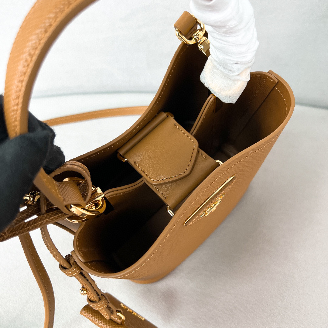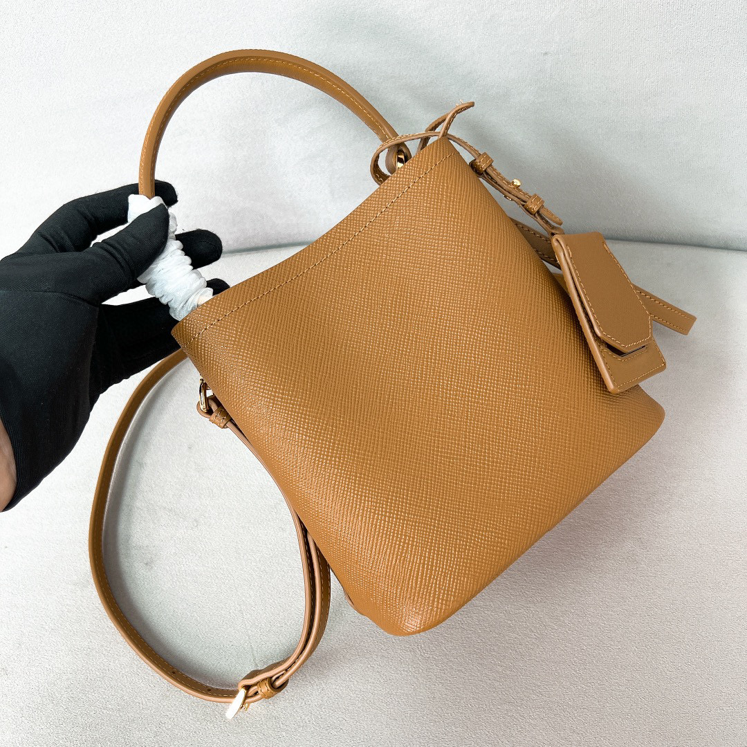 يمنح جلد البقر سافيانو ذو الحبيبات المتقاطعة هذه الحقيبة P دلو سحرها الفريد——