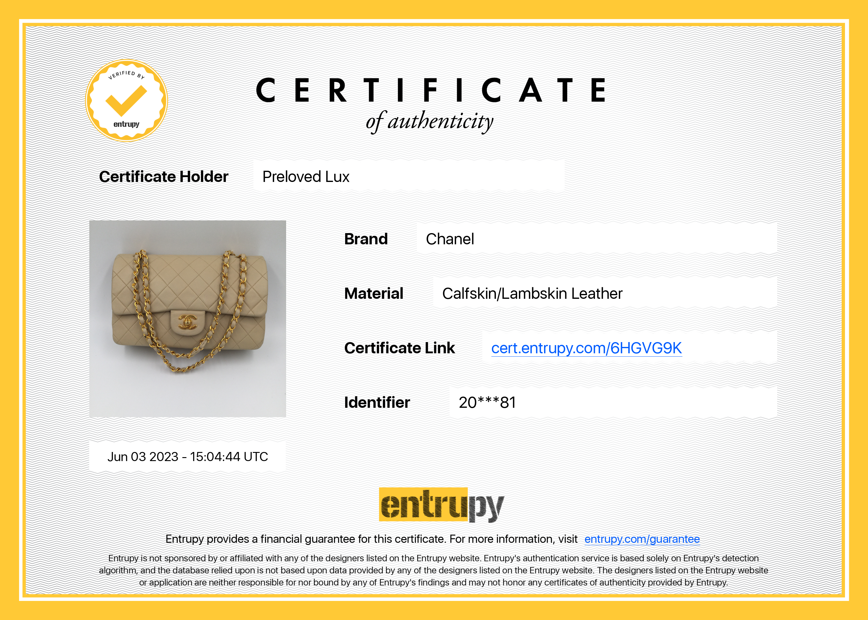 Entrupy: https://cert.entrupy.com/6HGVG9K?format=legacy